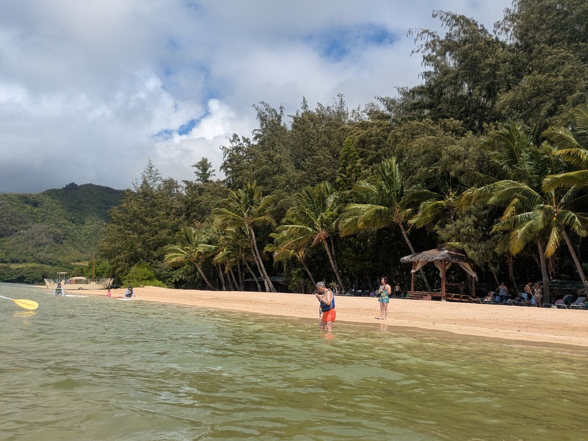 シークレットアイランドは、バスで7分位+ボート3分。ビーチで説明などあってから自由行動。海はシュノーケリングに向かない透明度。SUPなどは自由に出来て楽しかった。英語ができなくてもなんとなく大丈夫。自由時間は2.5時間位、12:30に帰りボートに乗船。からの帰りの合同バスは15:45。3時間近くビジターセンターで待つ事に耐えられず係りの人に言って入口付近の市バス3ドルで自力でワイキキまで帰りました。