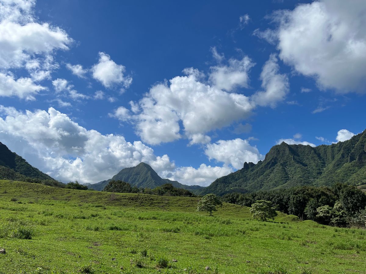 カネオヘ湾クルーズは、前日の夜に雨と強風が吹き荒れていたので、当日は曇り・うっすら晴れ間ではありましたが、風が少し強く波も高めでクルーズは揺れがすごかったです。(酔わなくてよかった、と思いました。)ウミガメは見られないかと思いきや、小さいウミガメが泳いでいるのが見えました。一緒に乗船していた人たちは気づいていなかったようで一瞬だったので本当にラッキーでした。