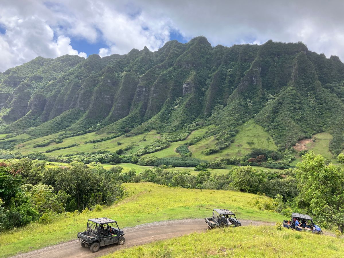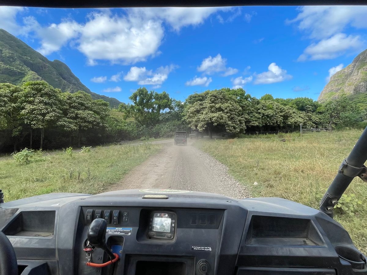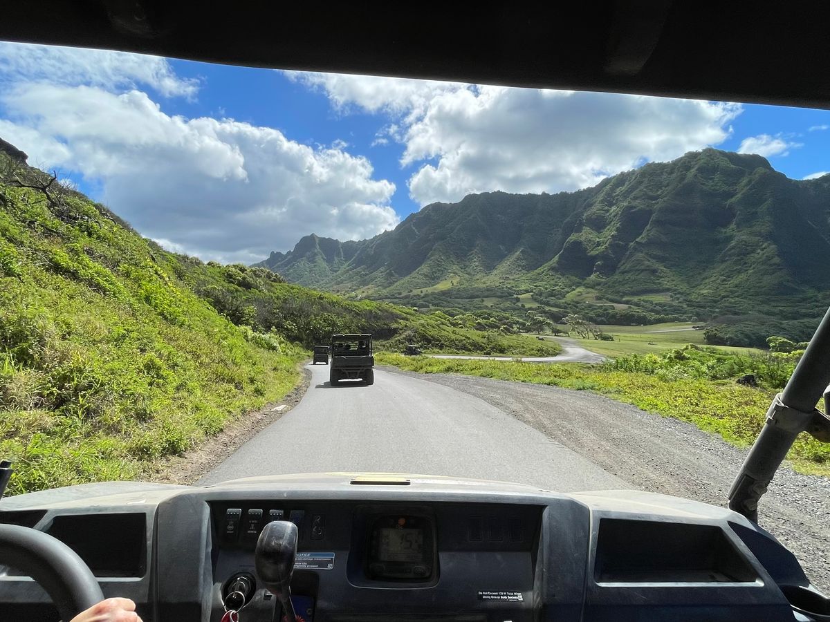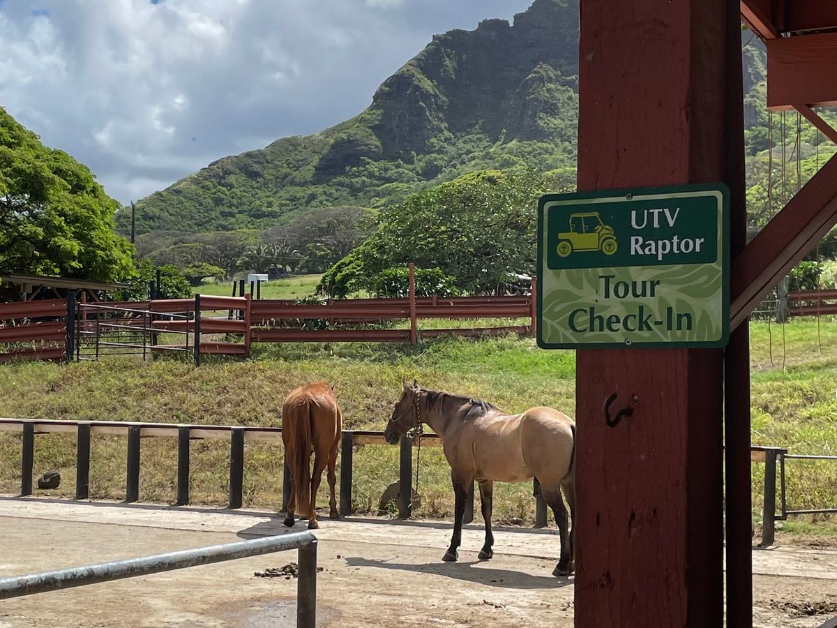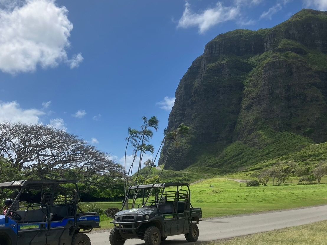 集合場所のシェラトン•アロハランディングバス乗り場は分かりやすく、ベンツのバスでクアロアランチへ。最初に各ツアーの説明をイケメンくんがまとめて日本語対応してくれたので助かりました。当ツアーについては、日本人は半分程度、スイス製軍用六輪ジープでジャングルを激走!解説は全て英語のためほとんど想像の世界。でも、壮大なコオラウ山脈とジュラシックパークの世界に浸ることが出来ました!