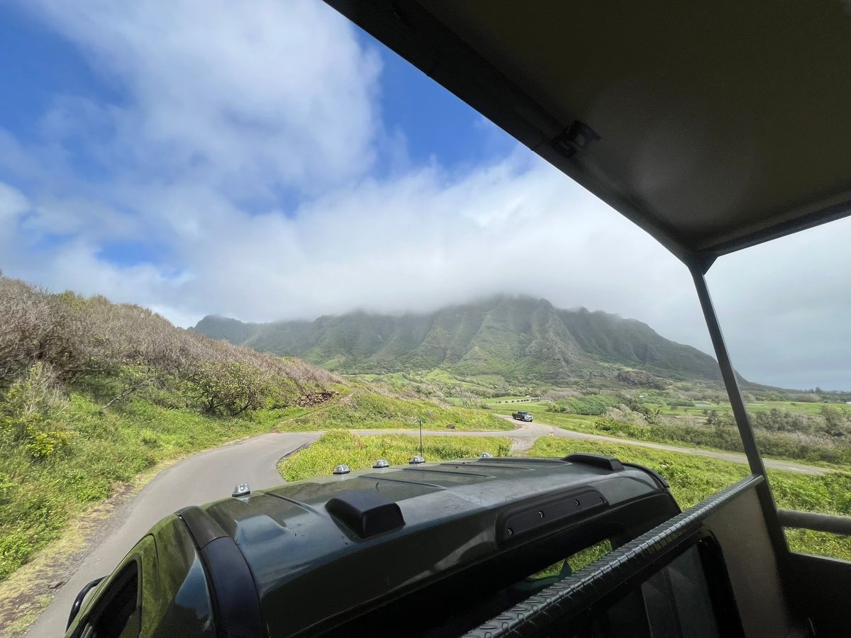 ホテルからの送迎付きで、車に乗っているだけですべての目的地に連れて行っていただけるので楽でした。私たちともう1組、計5人で1台でした。ピルボックスへの登り口につくと、ドライバーさんが荷物番をしてくださり、身軽に登ることができました。道中は日陰は風が吹くと涼しいですが、日差しは暑いです。(5月上旬でした)道のりは大変でしたが、登ると景色は最高でした!参加者同士で写真を撮りあったり、楽しい時間でした。下りはかなり滑りやすいので注意です。コオリナではそんなに時間はありませんでしたが、景色がきれいでした。アウトレットではあまり興味があるお店がなかったので、レナーズのマラサダとスタバのコーヒーで休憩しました。帰りの車でもドライバーさんのお話が楽しく、いい1日になりました。