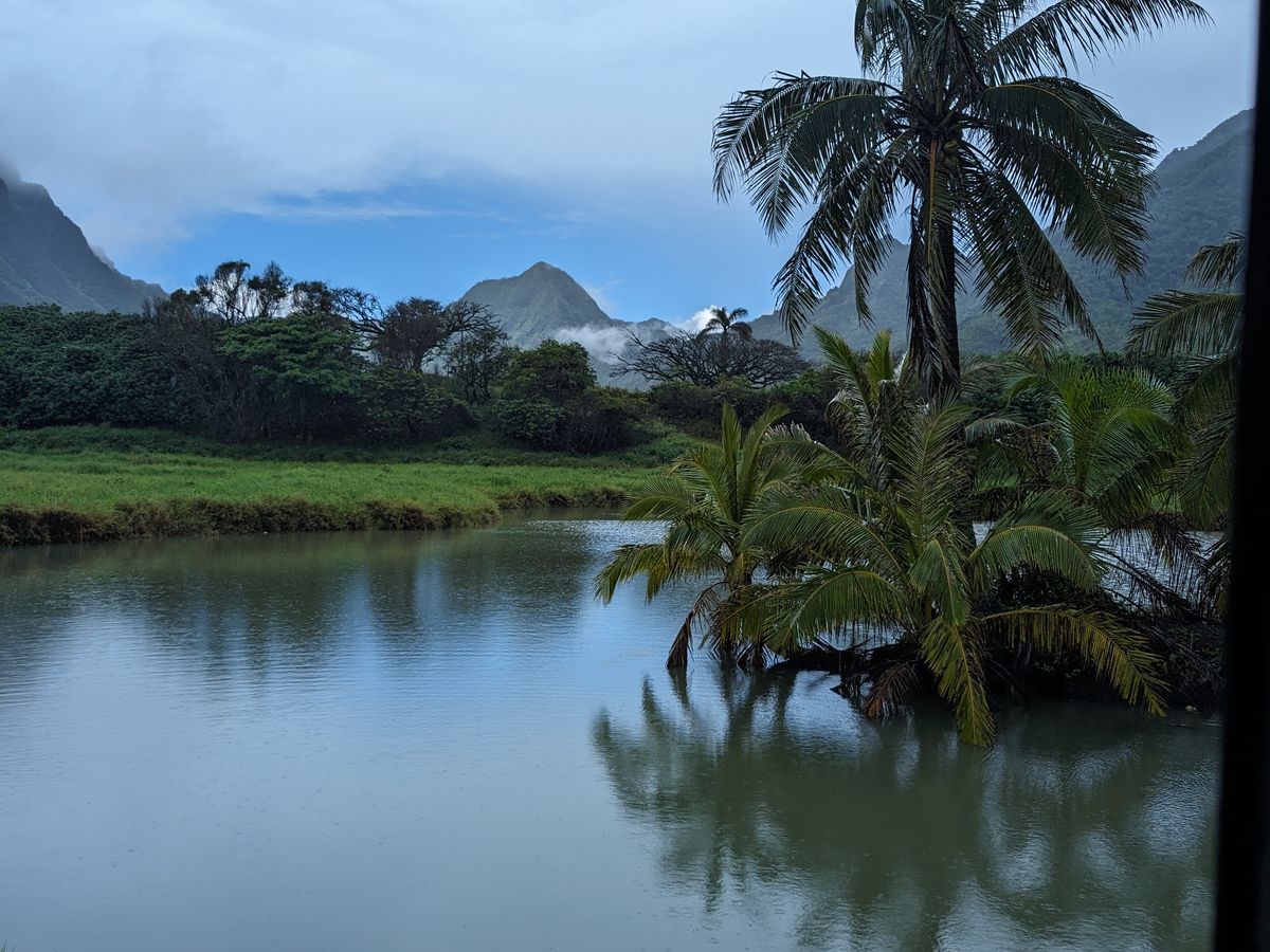 5月の中頃にいきましたがハワイも珍しい天候で雨が降ったり止んだりでしたが傘を持ち合わせていたのでなんとかそこまで濡れずにすみました。