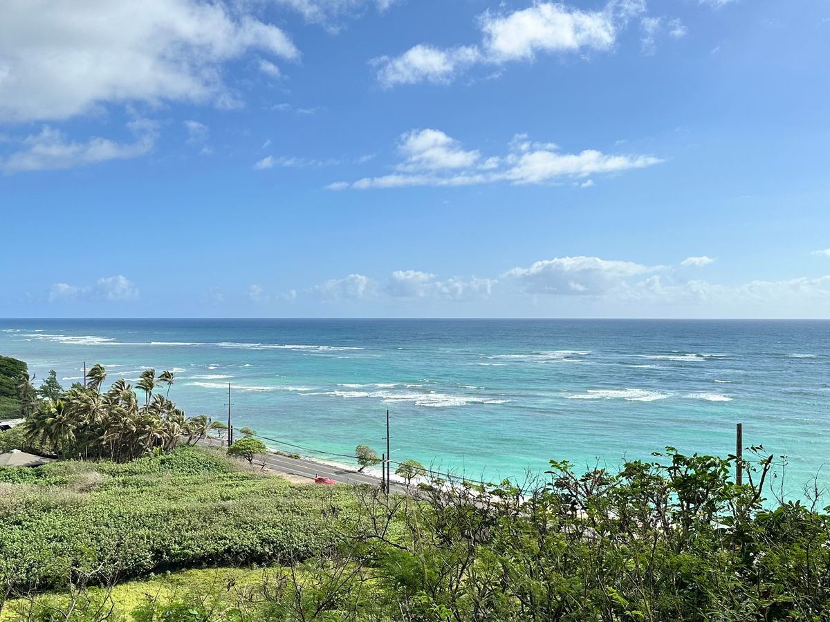 当日は天気も良く、ガイドのサカイさんも親切で良かったです。マーメイドケーブは高波のため閉鎖でしたが、私たち2人だけとあってかサカイさんも一緒にピンクピルボックスに登ってくれました。コオリナの後、リクエストで帰り道にパールハーバーに寄ってくれ、戦艦ミズーリを遠目からひと目見れました。