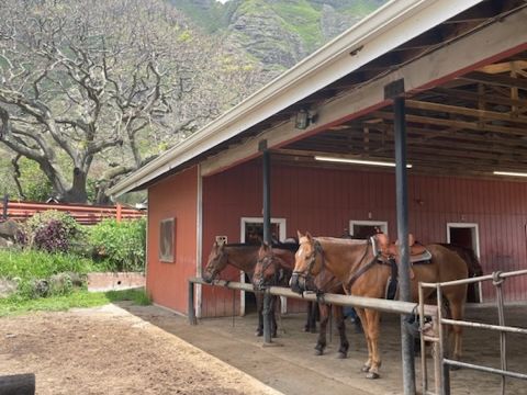 ガイドさんの英語は自分にはほとんど聞き取れませんでしたが、景色を見ながらガラスの無い窓からの風を感じるだけでも十分楽しめました!映画のBGMを流してくれたので、「ここあのシーンだね!」と子どもと盛り上がりました。また機会があったら他のもぜひやってみたいです。クアロアランチに行って良かったと思います。