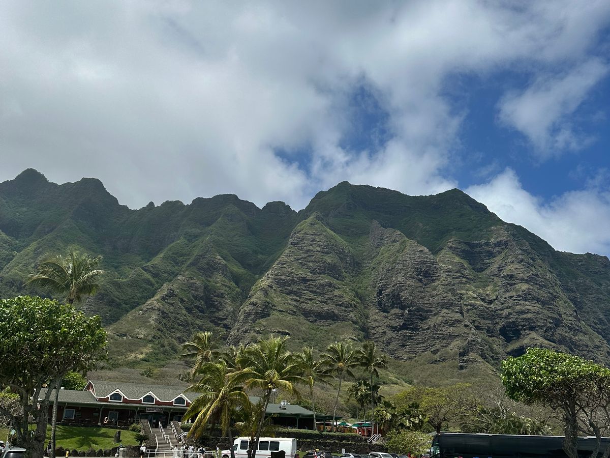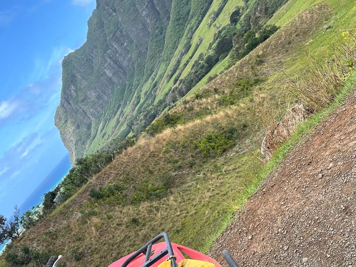 途中、晴れてたのに突然の大雨に見舞われましたが!岩壁と緑の前にかかる、初めて見るカーテンが揺れてるように降る雨の光景が美しくて感動していたら!コレがハワイの誇る美しい雨の光景だよと教えてくれました^ ^