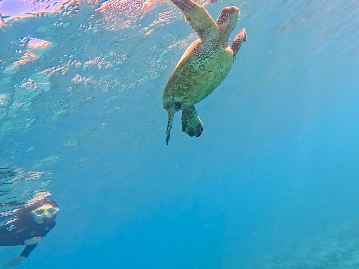 初心者で初めてのシュノーケルの主人は、先生が終始ボディボードで引っ張って下さり、捕まっていれば安心でしたので、私はフリーで泳げました!
