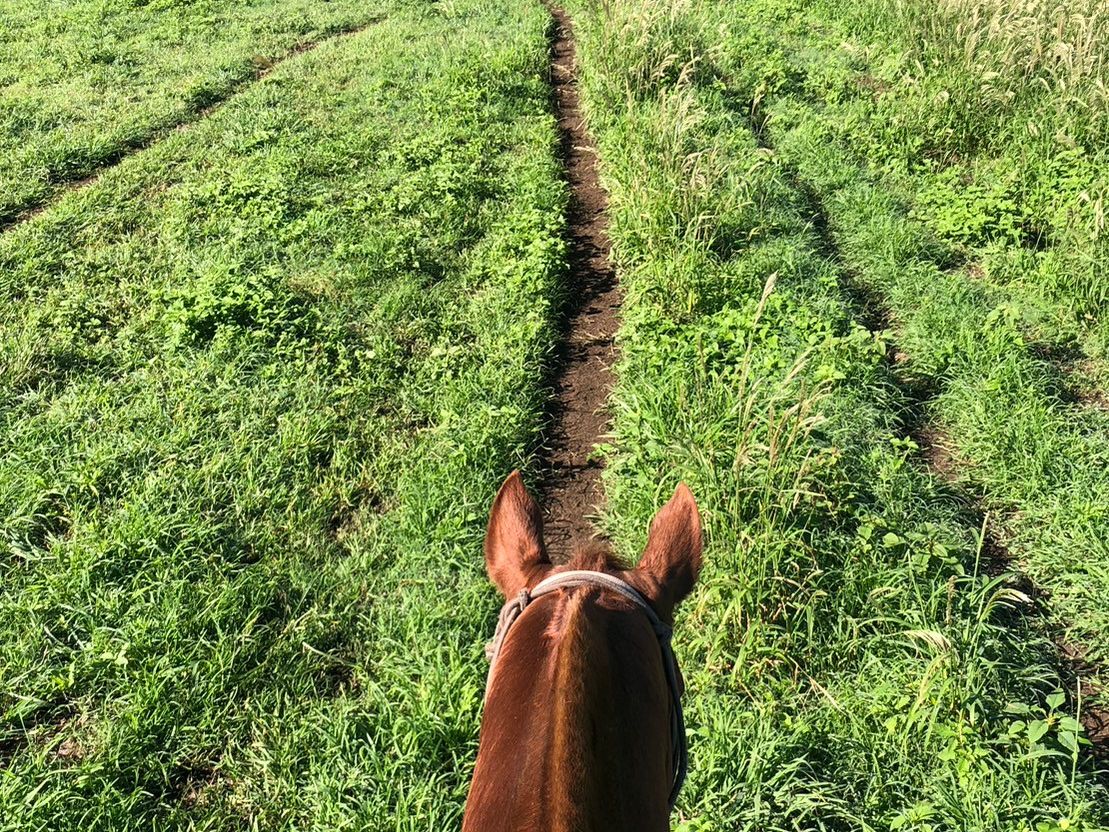 天候がびみょうでしたが、雨もふらず、景色もよく最高でした。2時間も馬に乗れるなんて