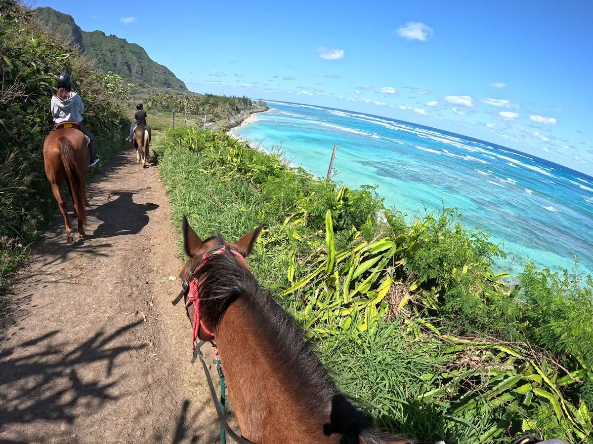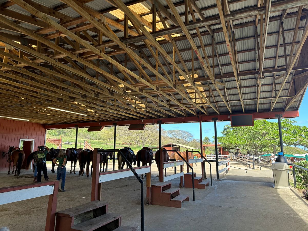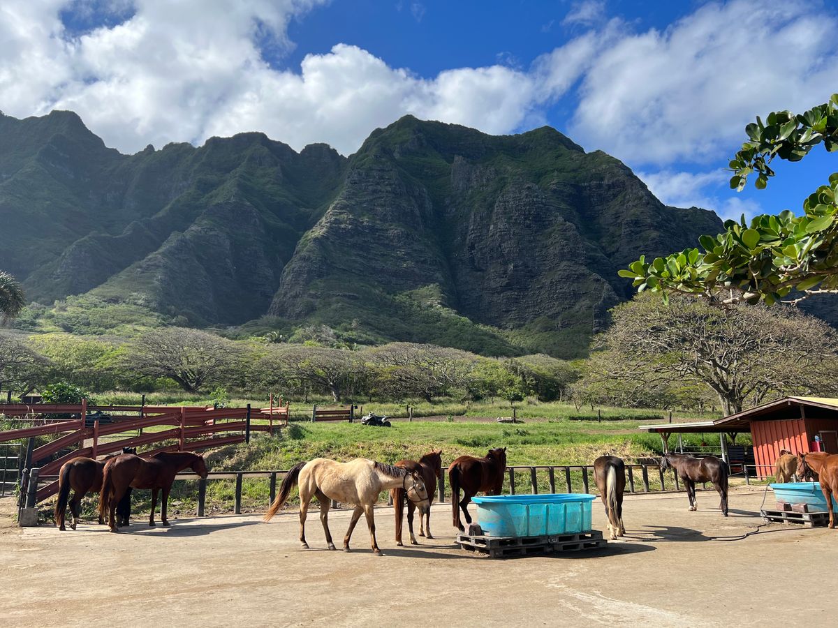 家族4人で参加しました。広大な施設の中で子ども達(20代)が一番喜んだのは乗馬体験。日本ではお客さんをもっと過保護?に接客しますが、説明を聞き、ヘルメットを被り、馬に乗り、「じゃあここから真っ直ぐ進んでね。」先導されなくてもペースや前後の間隔を保ちゆっくり進むお馬さん達、なんて賢い!そして可愛い!途中追いついた担当のお姉さんが、順調?どこから来たの?ハワイは何回目?など声をかけてくれますが、手を出し過ぎずいてくれたので、馬と自分と360度広がる自然を楽しむことができました。ランチは、低いレビューをつけていた方がおられましたが、豪華ディナーバイキングを求めて来ていなかったので、たっぷりのサラダやお肉2種類、ローカルな手作りデザートもあり、普通に現地の良さが感じられ、美味しかったです。どのツアーも、要所ごとに写真撮影の時間があり、ガイドさんが率先して写真を撮ってくれたり、プロならではの説明や無駄のない動きで好感が持てました。ワイキキからは少し離れていますが、行く価値アリです!