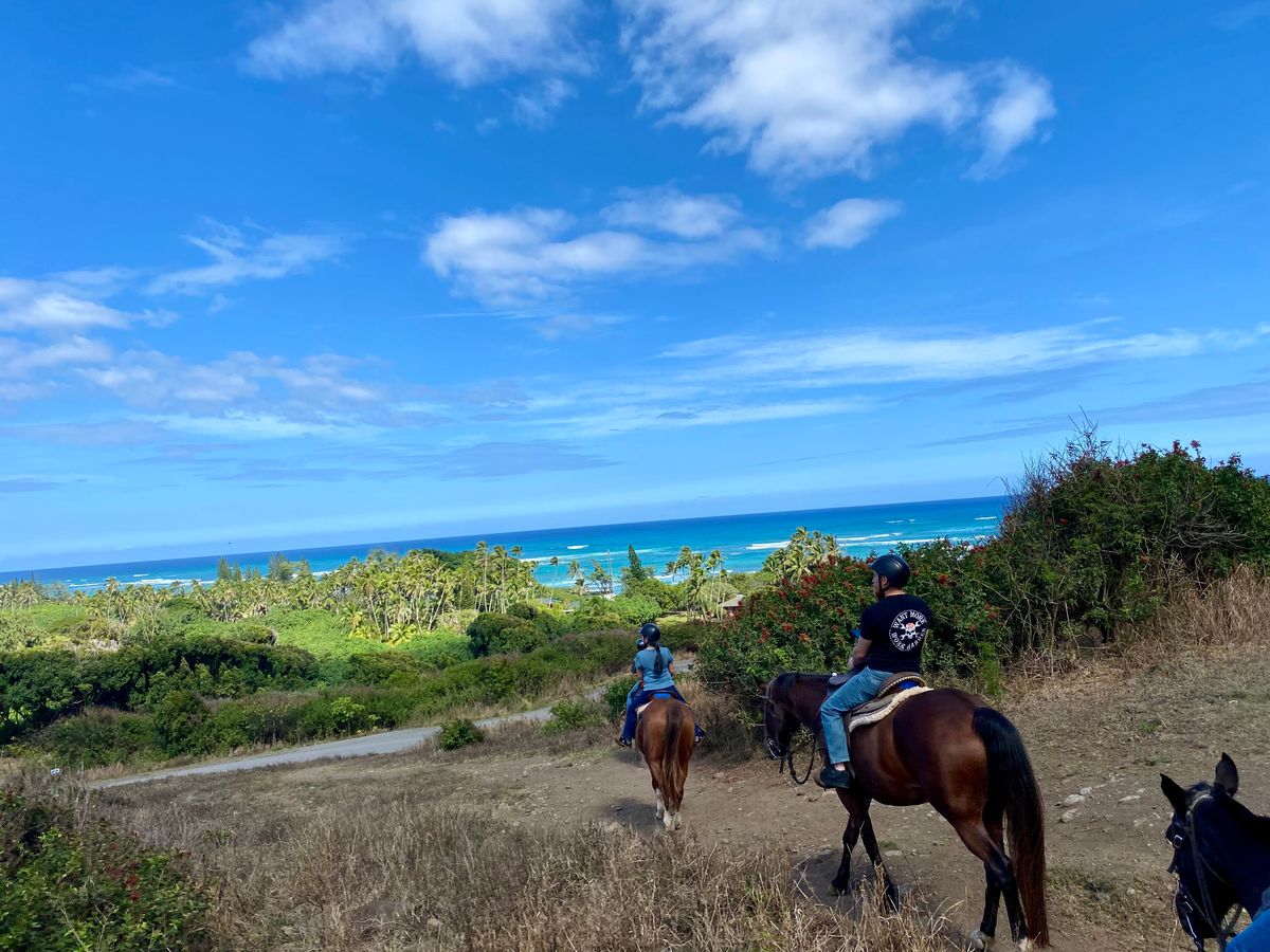 お天気に恵まれ、美しいコバルトブルーの海を見ながらの乗馬体験でしたとてもステキな時間を過ごす事が出来て良かったです。ハレイワタウンでの時間がもう少しあれば尚、良かったと思います。