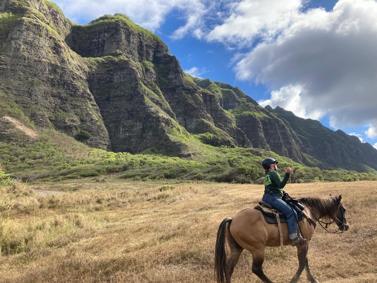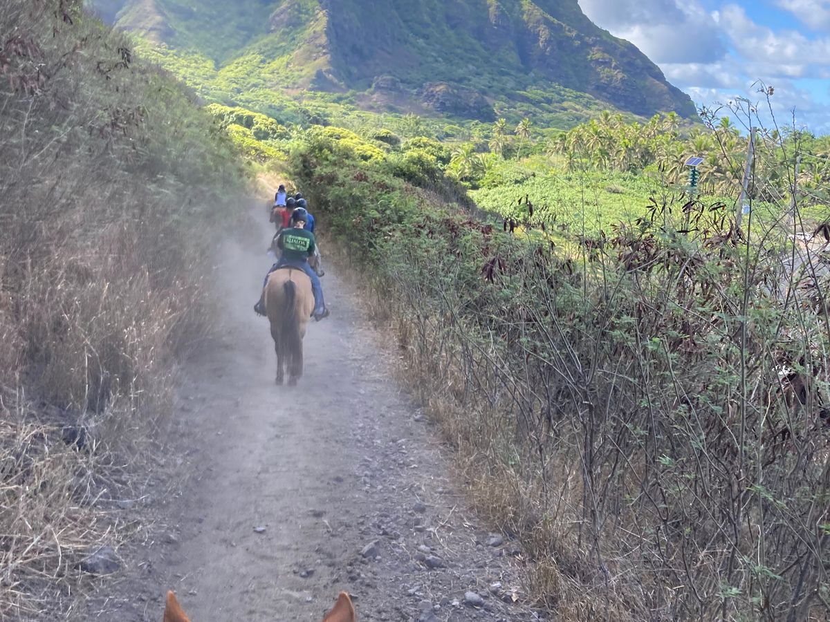 タイトルの意味は、このツアーに行った方であればわかると思います。大自然の中を馬に乗りながら進むという貴重な経験ができました。最初は気持ち良く馬に乗っていたのですが、2時間は少し長いと感じました。馬に乗ったことがない方は乗馬がキツイと感じるかもしれないため、バギーやバスの方が良いかもしれません。また、クアロアランチは思っていたよりも観光するところがなく、送迎付きにすると待ち時間が長く感じました。Uberを使うのに慣れている方は、送迎なしのプランにした方が自由に動けるので良いかなと思いました。