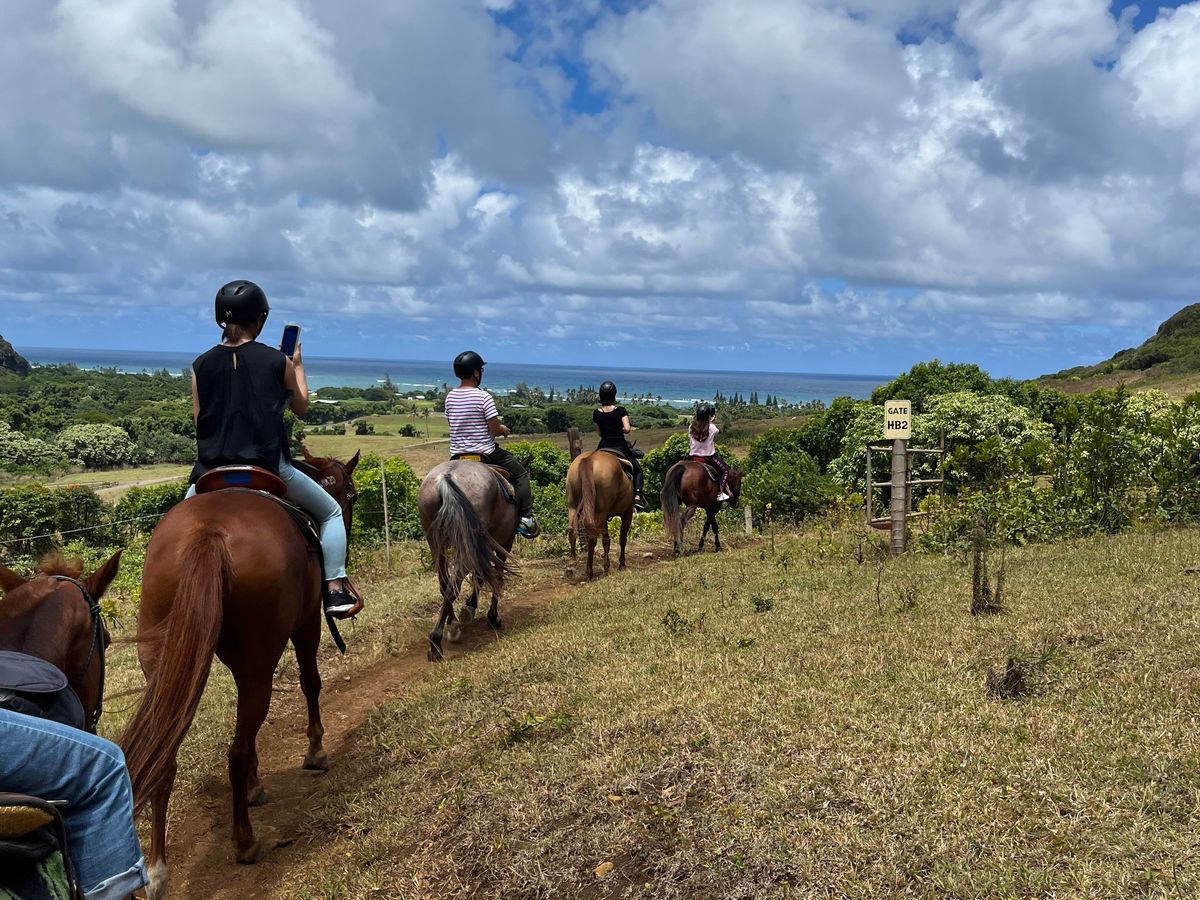 子供も一人で乗馬できるので良い体験になります、のんびり馬に揺られハワイの自然を満喫出来ます。
