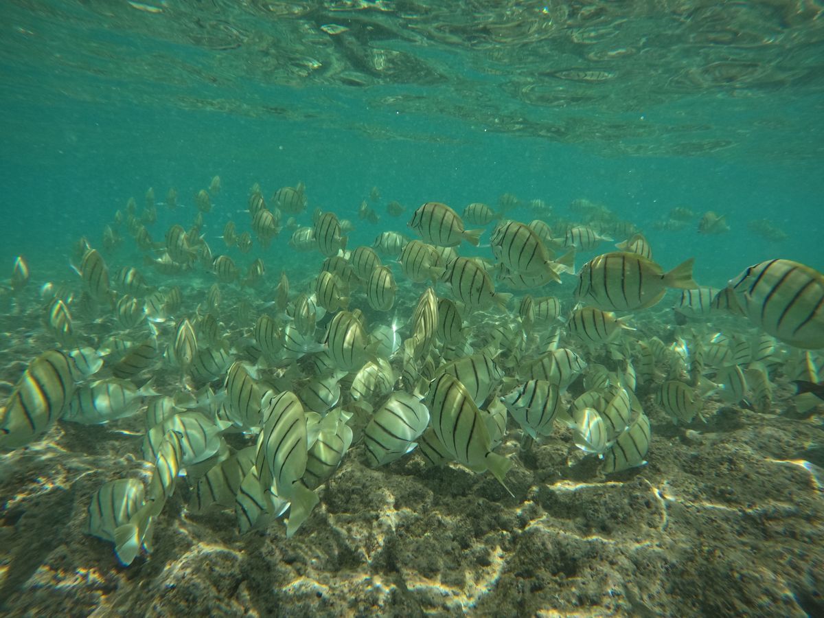 シュノーケルの練習をしつつ、お魚のいる所に案内してもらい沢山の魚の群れが見れました!気づけば随分泳いだなぁという感覚。
