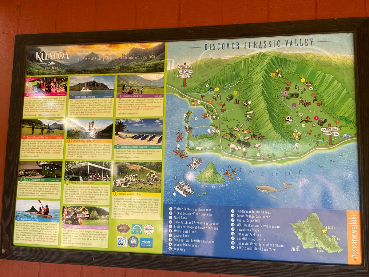 いつかは行ってみようと思っていたクアロアランチ。夫がジュラシックパークが好きなのでこちらのツアーにしました。3つのショートツアーを一日かけて周る感じです。90分1コマなのでまるで大学の授業のよう笑 英語の説明ですが、アメリカンジョークも簡単なものだったりするのでそんなに何を話してるかわからない状態にはなりませんが、ハワイの植物を学んだりと意外と修学旅行チックなツアーもありました。マカダミアナッツを自分で割ってフレッシュなものを食べれたりと、映画のロケ地訪問だけではない魅力が詰まったツアーで大満足でした。ただ、拘束時間が長いので短期滞在だと勿体無いかも。往復のバスは極寒なので厚めの羽織ものやパーカーをお持ちになることをおすすめします。