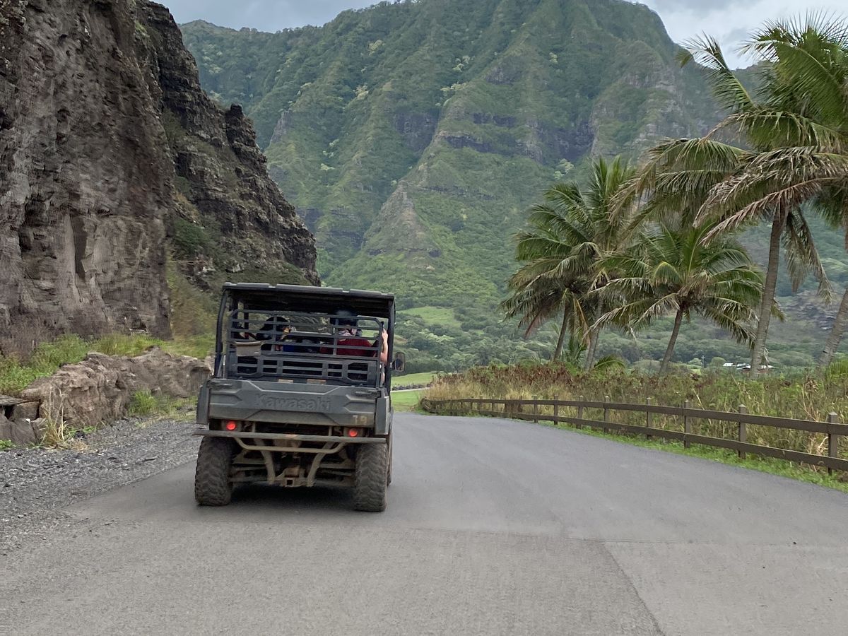 ワイキキからバスで40分くらいのエリアでのバギー体験で、結構ガッツリ運転します。日本の免許で大丈夫ですしオートマなので心配無用!