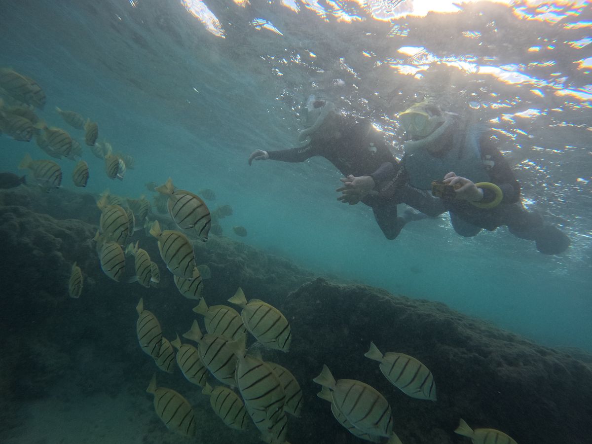 ハワイ州魚やシマハギの群れ、そして泳いでいるウミガメにも会えて本当にラッキーでした!