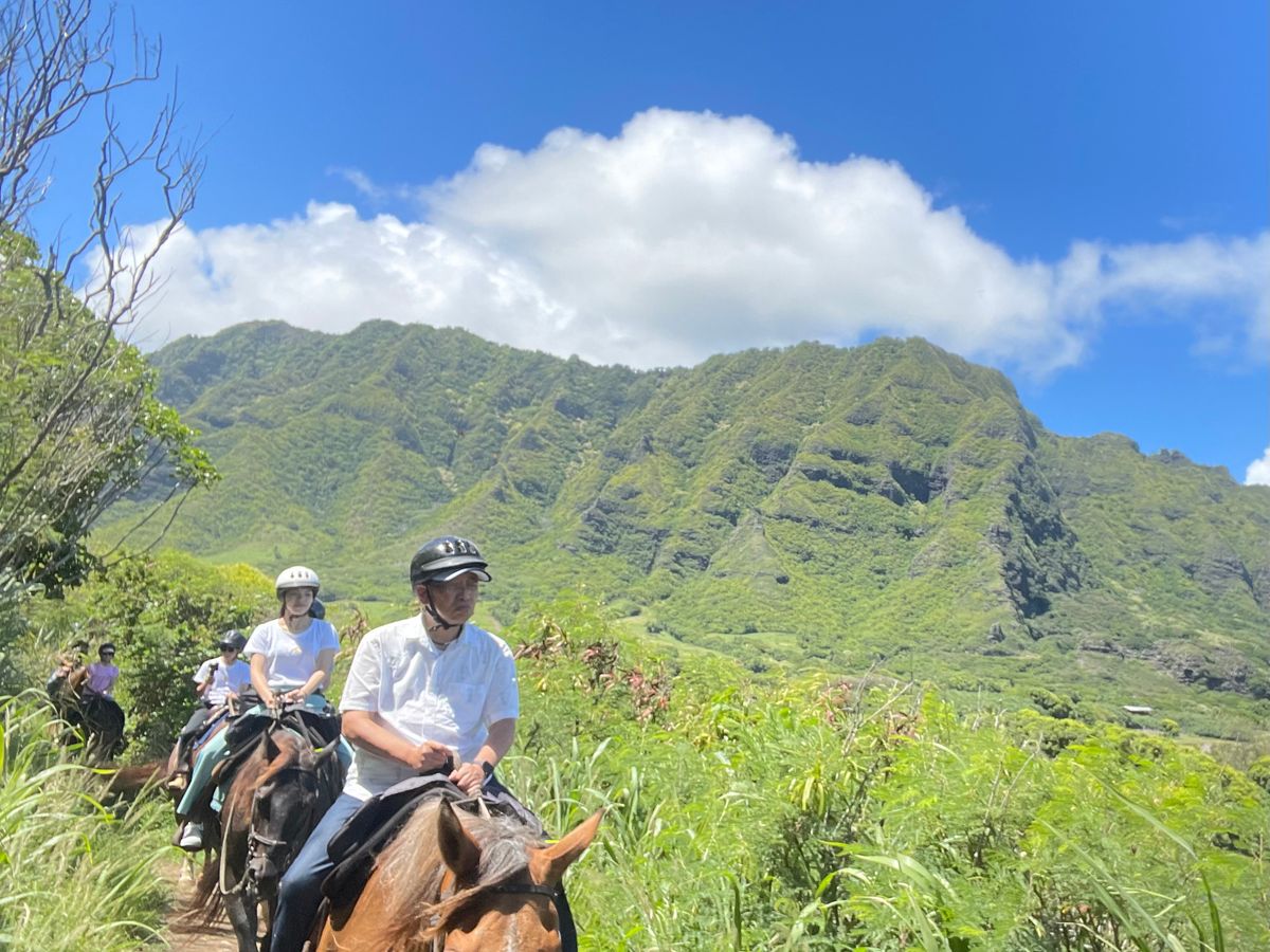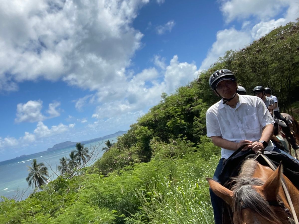 渓谷乗馬がリニューアルのため海辺のコースを選択しました。ワイキキとはまた違ったローカルなビーチを眺めながら、最高の景色です!