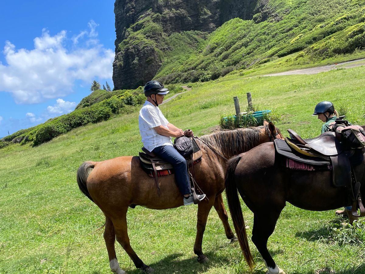 いきなりの乗馬で不安でしたが 馬さんが賢くて 安心して乗って行けました。壮大なクアロアランチ、きれいな海 もう最高でした。