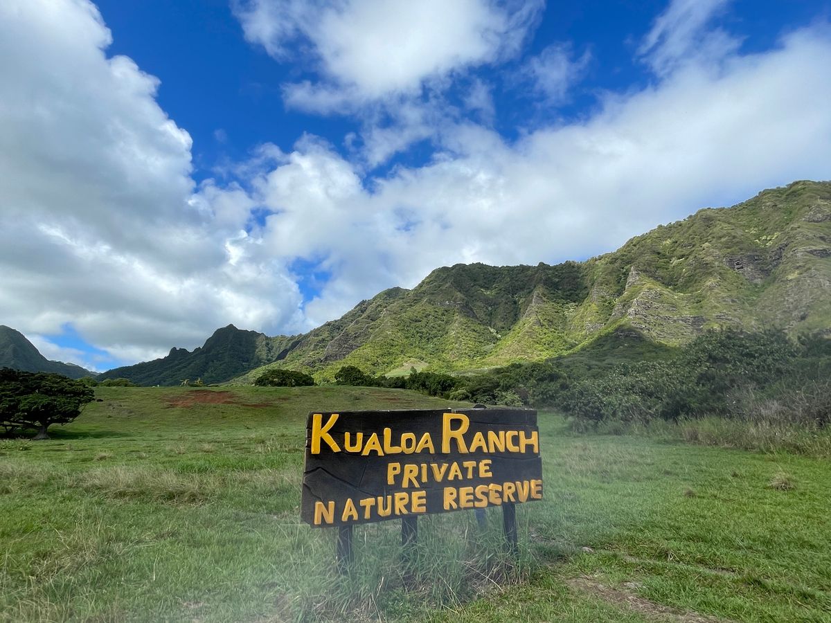 この日はクアロアランチのバギーツアーに参加しました。集合時間は10:15で、ツアー開始は12:00。集合場所はとてもわかりやすく、時間になると「Kualoa」と書かれた看板を持ったスタッフの方が案内してくれたので迷うこともありませんでした。参加者の中で日本人は、私たちを含めて2グループだけでした。