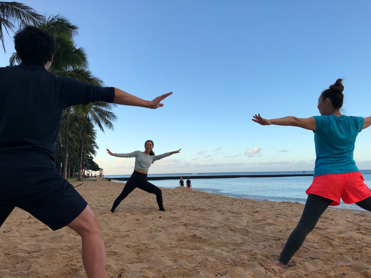 80歳のお婆ちゃんのお祝いにてハワイに行きヨガをさせてもいました。