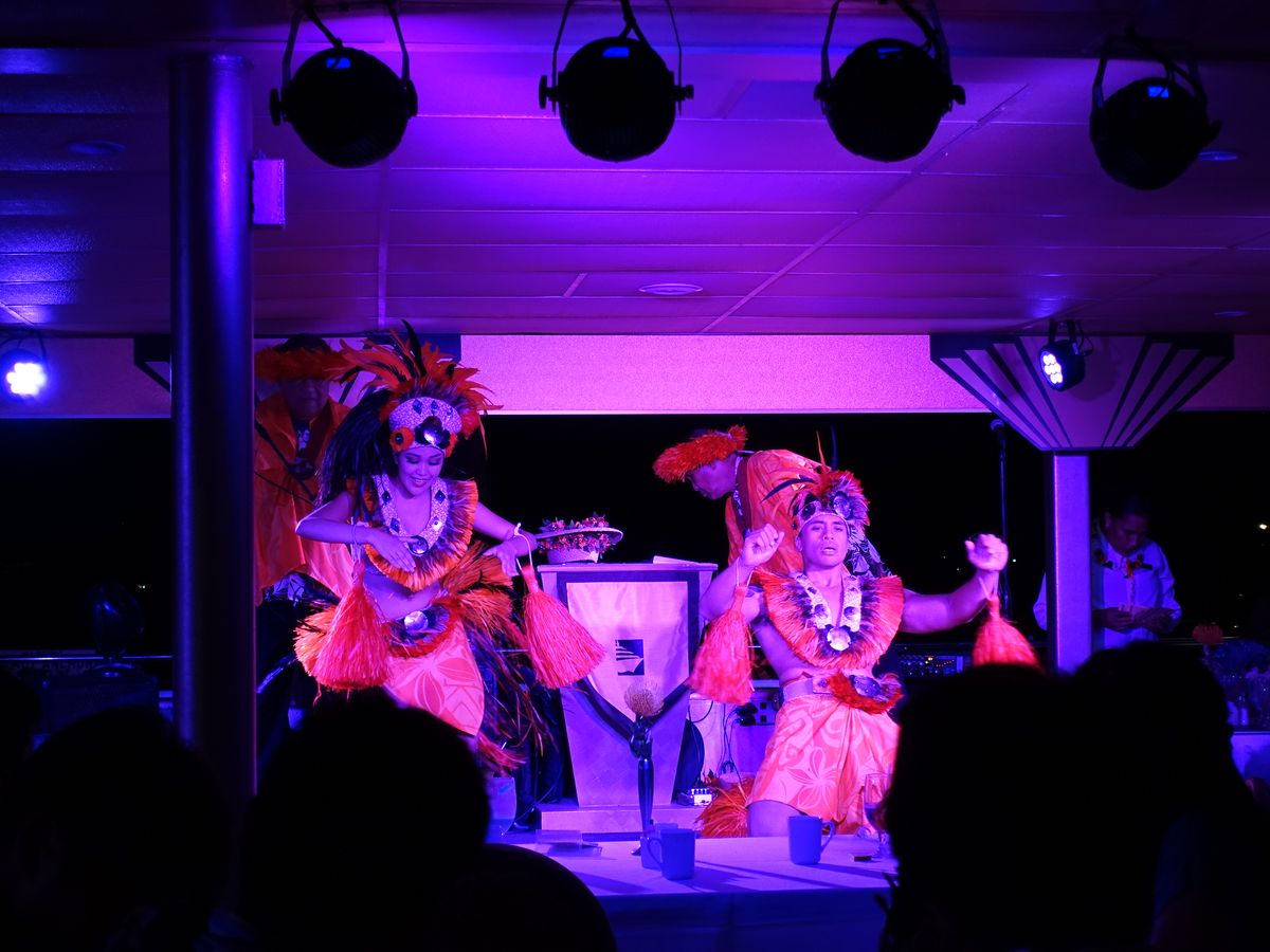 乗船するときもクルーがダンスでお迎えしてくれますが、食事の間もギター演奏があり、ポリネシアンダンスなども楽しめます。