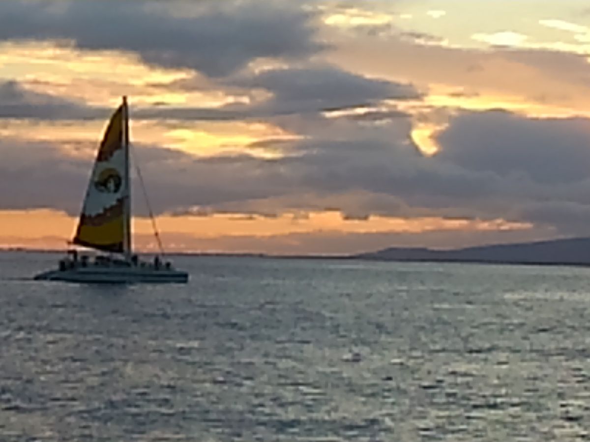 結構、沖の方まで出てくれてダイヤモンドヘッドもいつもは見ることが出来ない所が見れ、サンセットもしっかり見る事が出来るよう船を停めてくれます。
