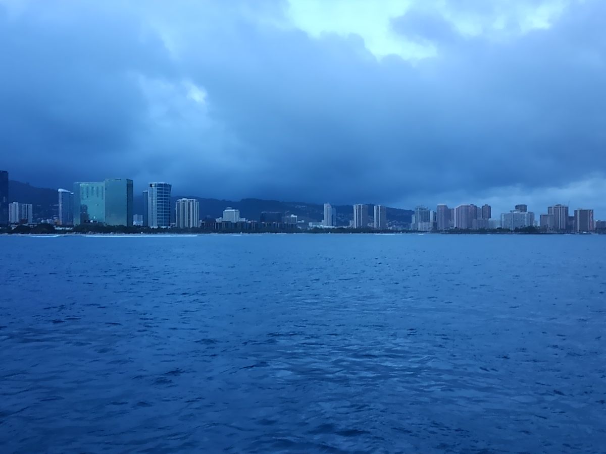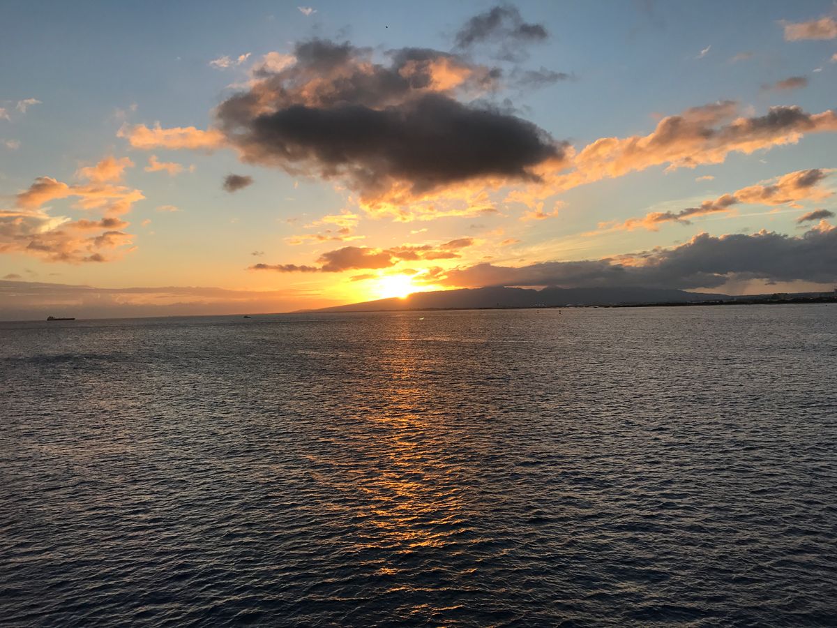 明るいうちに出航するので、青空と青い海とワイキキの景色を気持ちよく堪能!その後サンセットの美しさに感動しました!