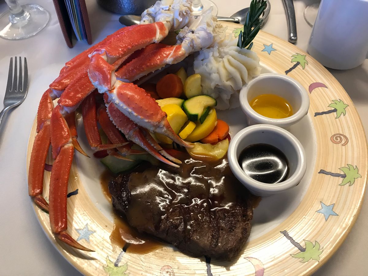 食事は船外でのシャンパン・アピタイザーから始まり、ロブスターやらステーキやらいろいろ食べました。どれもおいしかったです。