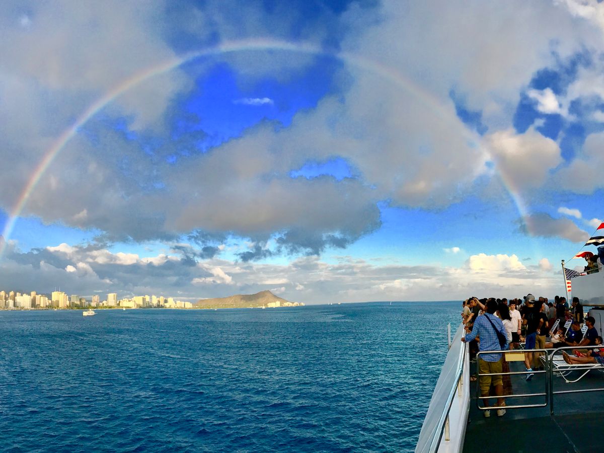 2年前に初めて乗船しました。今回は2回目。一度乗ったからもういいではなく、海から観るワイキキの街並み、海の向こうに沈んでいく真っ赤な太陽、船内でのハワイアン音楽やダンス、料理と盛りだくさんでハワイ気分満喫です。さらに今回はヒルトンの花火を観ることもでき、やっぱり機会があればまた乗りたいと思うツアーです。