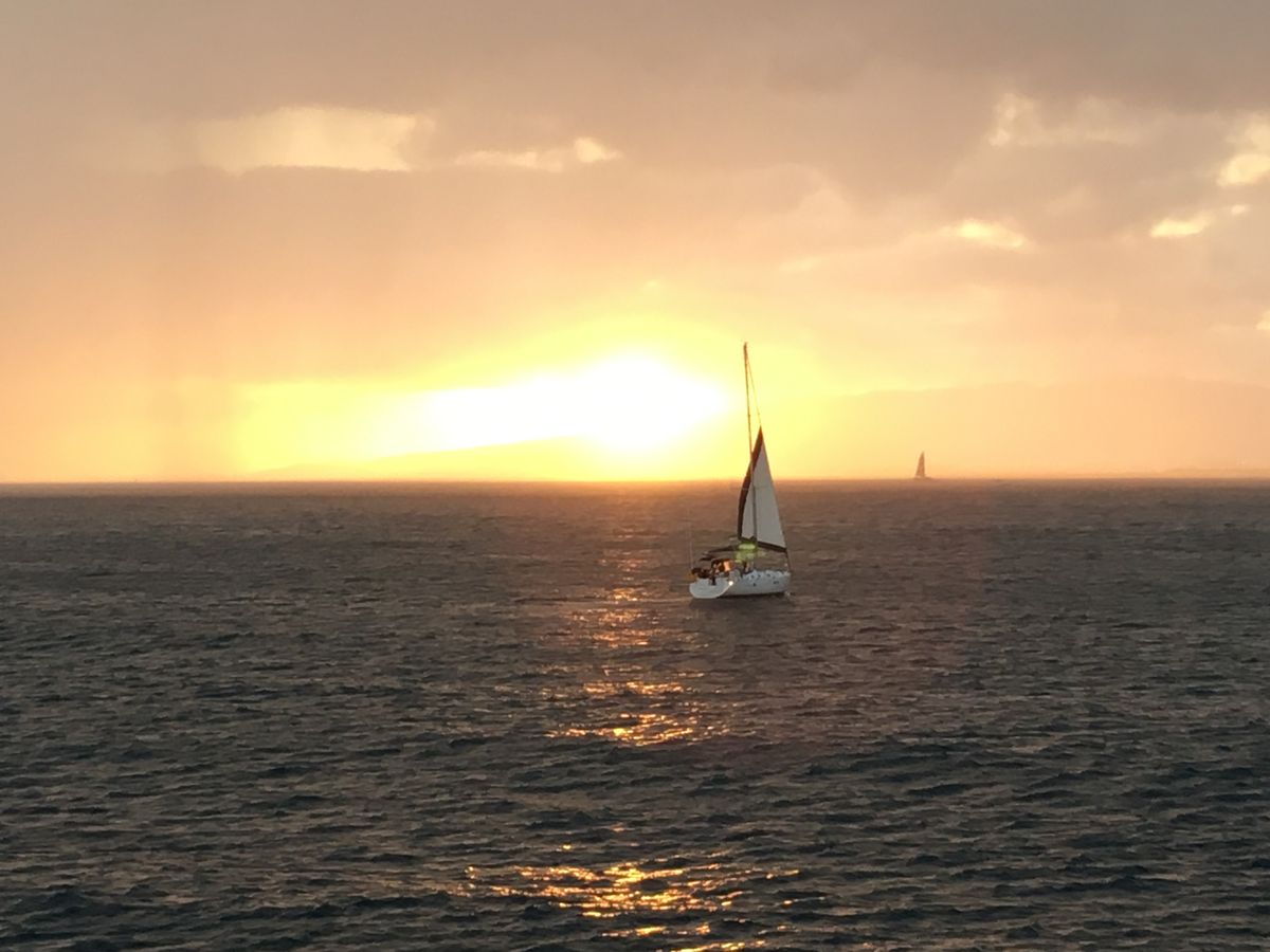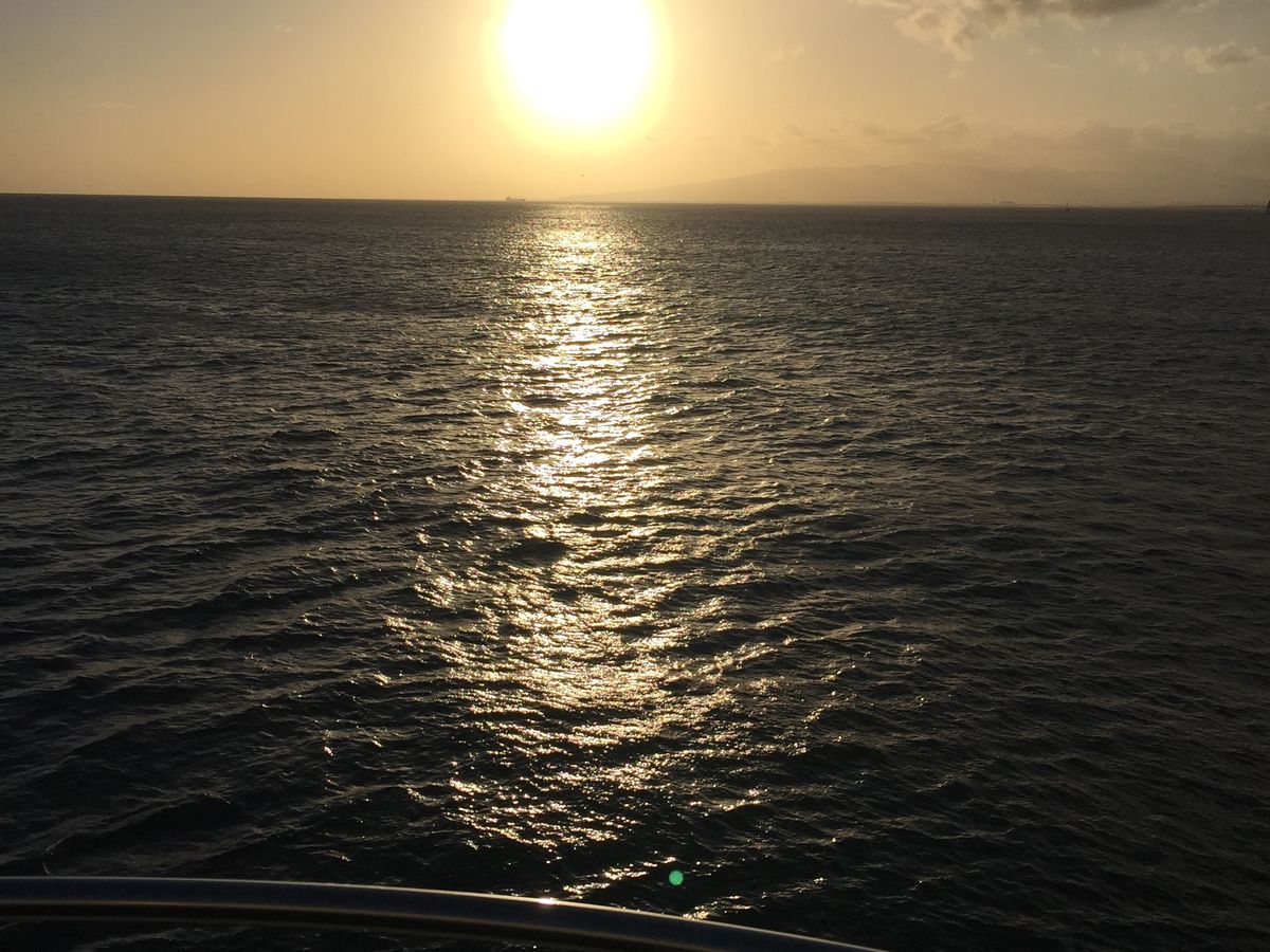 ホノルルに到着した夜、娘の結婚式を翌日に控えた日に乗船しました。10数年前にも乗船してとても良かったので、今回が2度目でした。船長・クルーの楽しい会話と雰囲気の中、お酒も進み、サンセットも見ることができました。最後はスコールでびしょ濡れでしたが、それも楽しみに一つです。時差ボケが完全に抜けました。私は雨対策でパーカーを準備しておりましたが、半袖Tシャツだけだと寒くなるので要注意です。