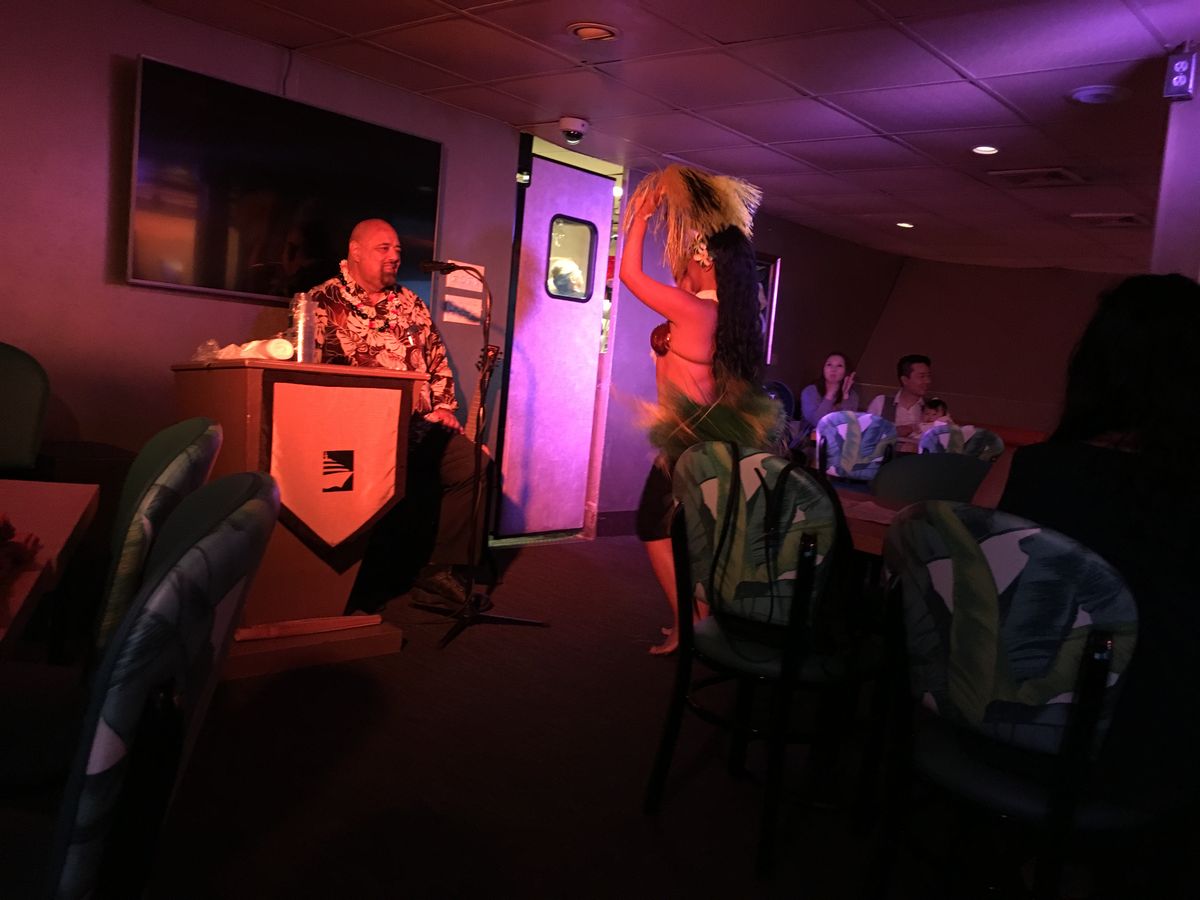 生演奏をしてくれるおじさんと、ダンサーとウェイターを兼任の男の子が2人、フラガールが1人いました。