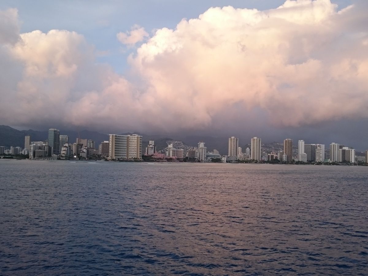 夕暮れのワイキキの景色が素晴らしかった!ラッキーなことに大きな虹とダイヤモンドヘッドの2ショットの景色も見ることができました。こんな眺めはクルーズならではなので、参加して良かったです。後半のショーもとても盛り上がって楽しかったです。