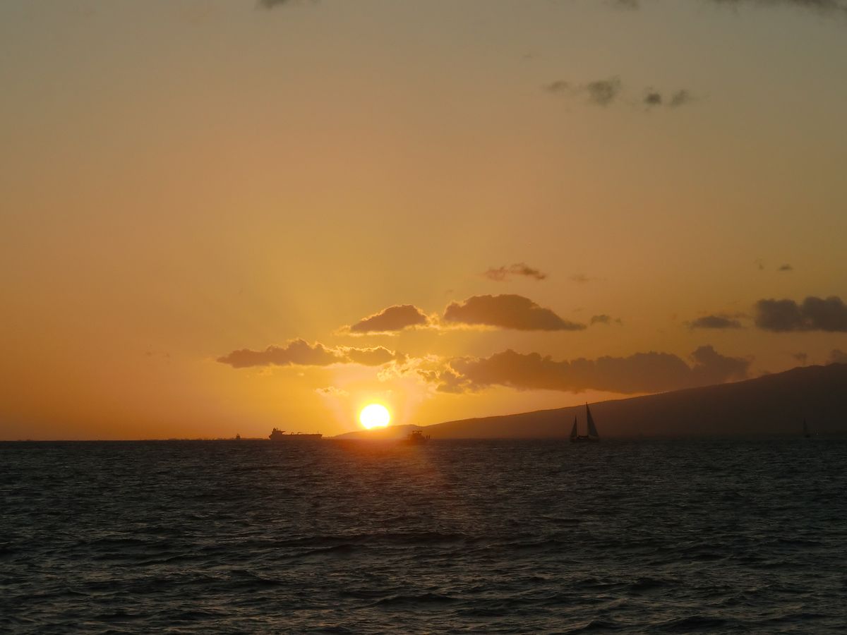 お目当のサンセットはそこそこでしたが、偶然にもホエールウォッチングが出来たのは最高でした。