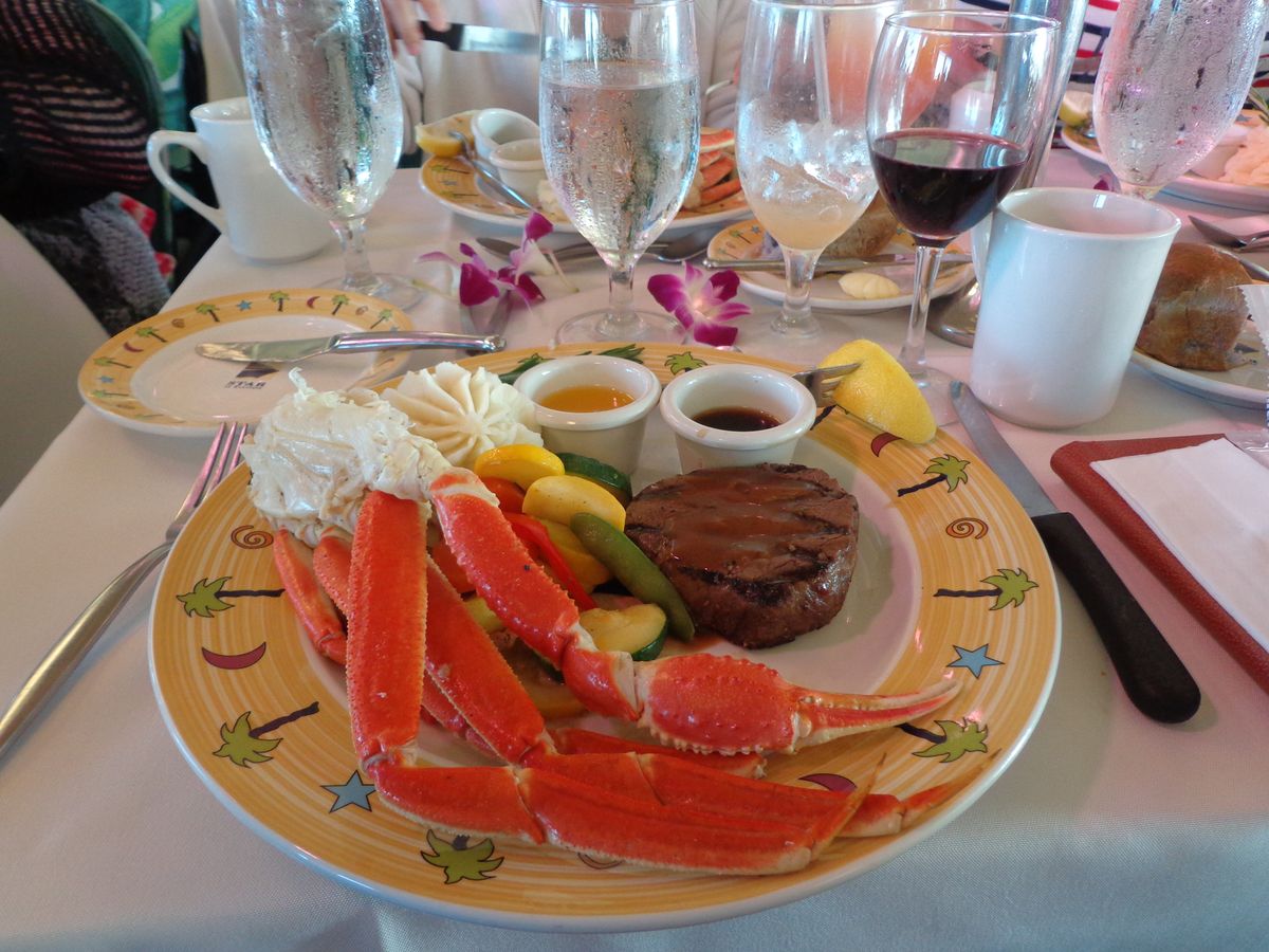 ゴールデンウィーク前の4月26日に主人と参加しました。東城はお天気に恵まれてラッキーでした。船内は日本人は寒いと思います。お料理はボリューミー、私はステーキが苦手なので予約の際チキンへ変更しておきました。食べ放題の蟹はウエイターの方が席へ運んでくれますよ。ノリの良いおじさんがウクレレ演奏そしてハワイアンショー最後にゲスト含めみんなでダンスショーで楽しかったです。