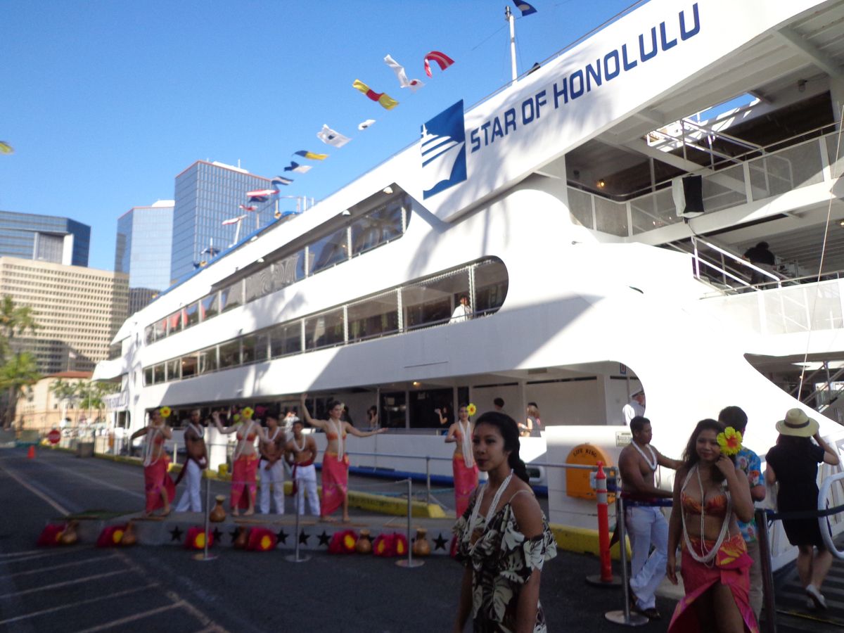 去年のハワイの時に参加しました。家族は何度も乗っていますが、私は初体験。豪華なクルーズという感じで良かったです。お料理もお値段分は美味しかった。★一つマイナスは、帰りのバスの運転手さんがちょっと適当な感じだったので(途中のホテルで停車してゲストを下した後、通りすがりの白人女性グループに話かけてて、全然発車しないから驚きました。5分以上は話してました)夜遅くなる分、きちんと運転して欲しかったです。今度は花火を見に、金曜日に乗船してみたいですね。