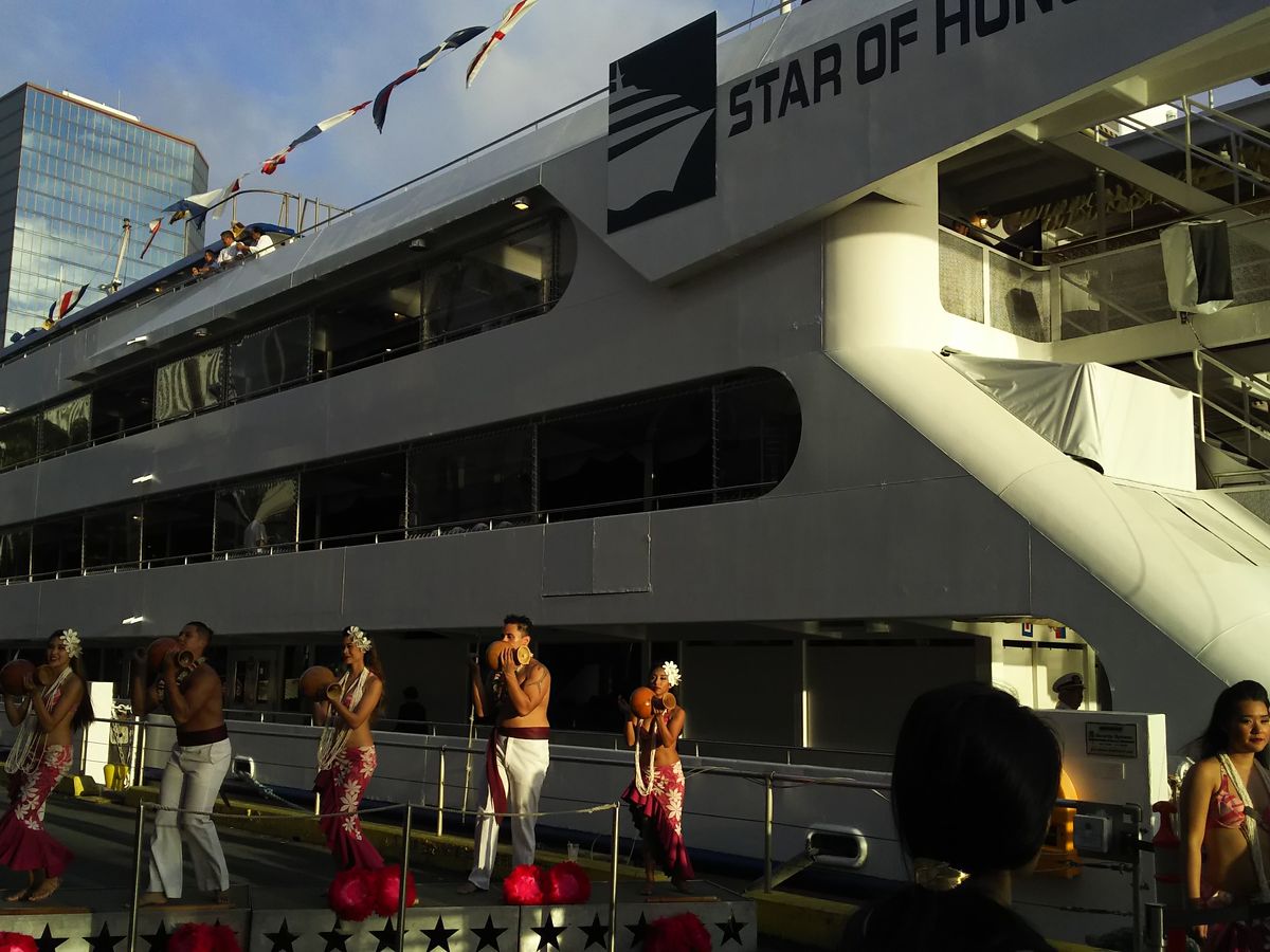 ハワイはもう10回以上来ていますが、サンセットクルーズは初めて。妻と最後の日に参加しました。ビュッフェの食事は普通の内容ですが、エンターテインメントの中身が濃く、歌やフラが楽しく最後の客全員によるダンスが盛り上がります。スタッフもフレンドリで楽しいときが過ぎました。旅の最後にお勧めです。ビュフェ形式のクラスで十分。