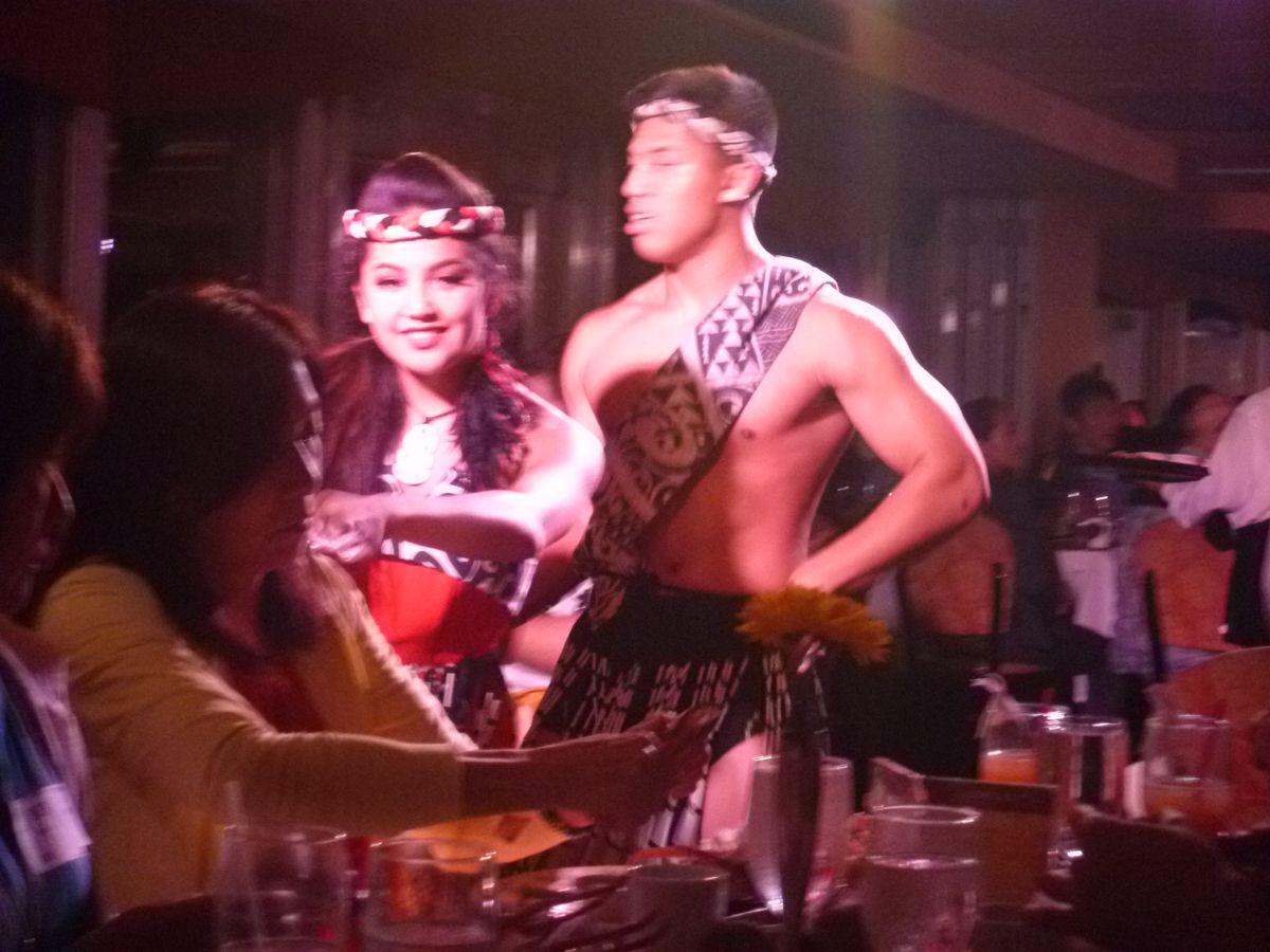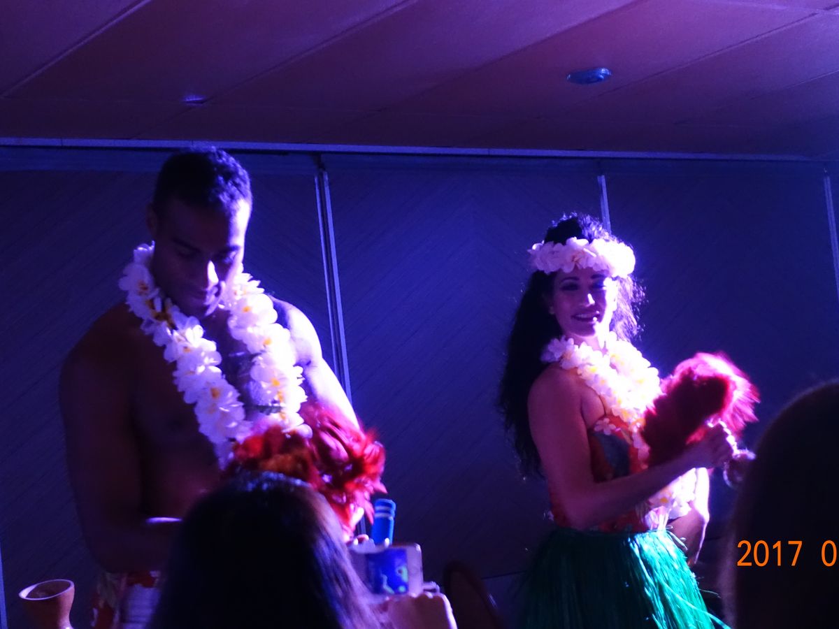 食事をしながら、海に沈むきれいな夕日と、暗くなってからはワイキキのきれいな夜景を見ることができました。ショーは、フラだけでなくタヒチアンやいろいろ見せてくれて、とても楽しめました。