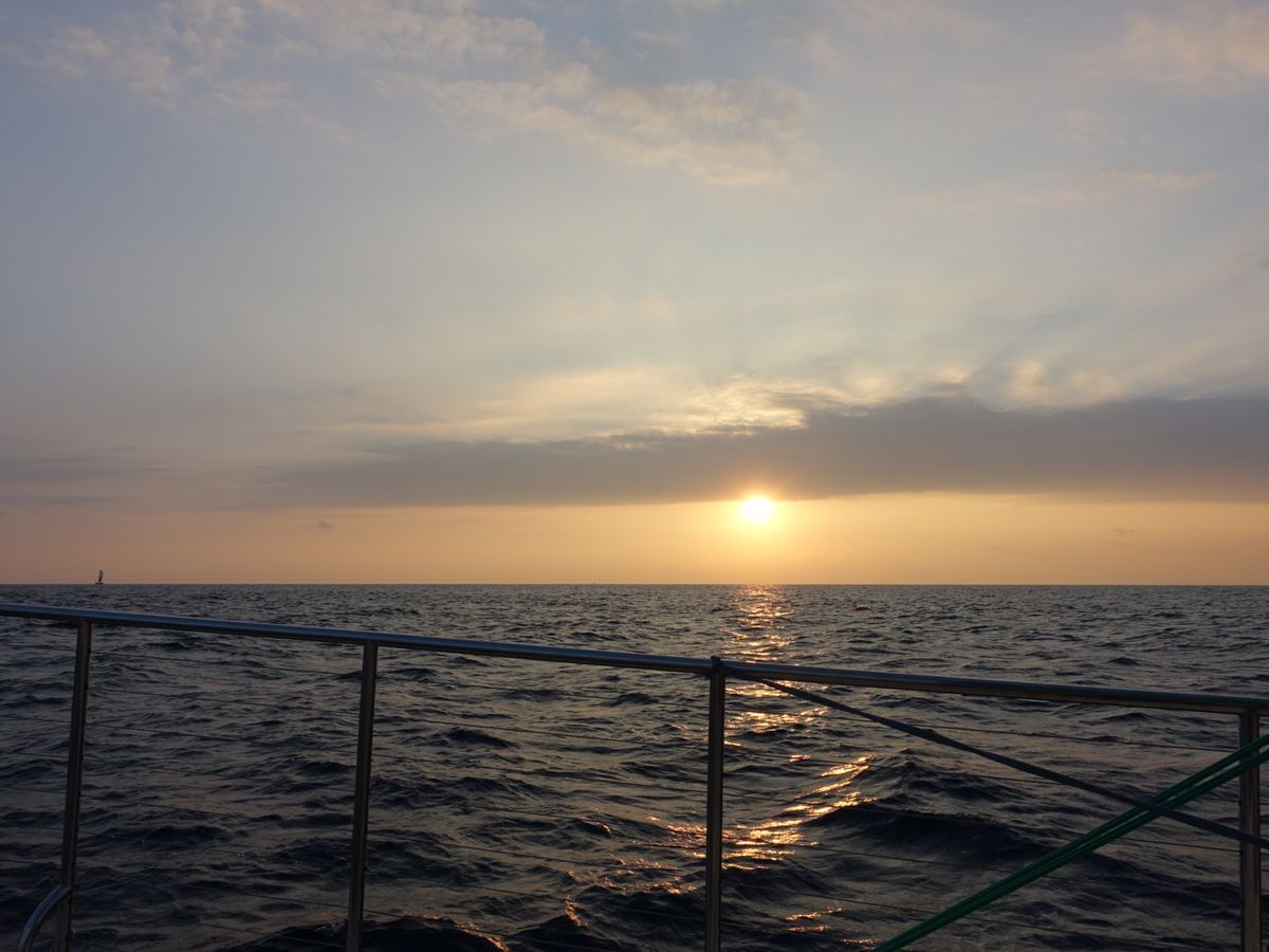 夕日に向かって走るカタマラン号は揺れも余り無く、