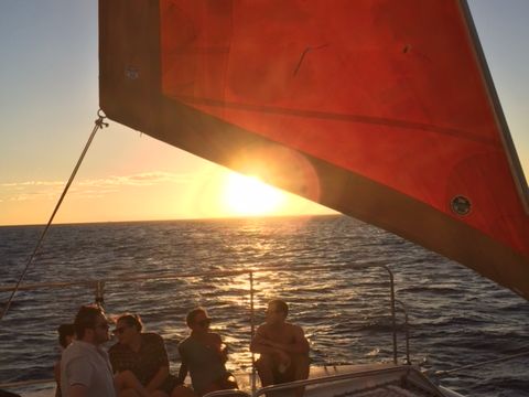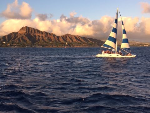 私たちはサンセットクルーズで全てを楽しみました - 日の雨、ダイヤモンドヘッドの真上にかかる美しい虹、壮大な夕日、そして満月。素晴らしいデイブとフィリップ、そして素敵な仲間たちもいました。飲み物と楽しさが溢れました!この旅行を家族や友人にぜひ勧めます。次回ワイキキに来た時には、またクルーズに参加します。