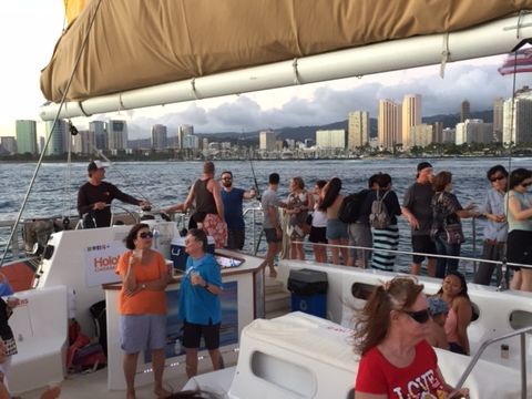 ビーチをクルージングしながら花火を見る素敵な金曜日の夜でした。クルーは非常にプロフェッショナルで、バーもよく運営されていました。ワイキキビーチで非常におすすめです。