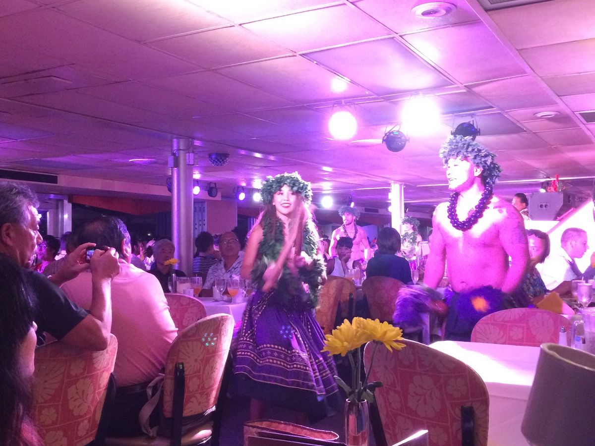 3スターのディナークルーズ2回目となった今回は主人と主人の母と3人で参加しました。1回目は私達のハワイウェディングの際に2人で参加しましたが、今回はその時より格段に内容が良くなっていて、義母も大変満足していました。ショーの最後は参加型の一体感のある内容になっており、ショー全体の時間も長く帰港するギリギリまでフロア全体が盛り上がっていました。日本語を少し話せるスタッフも多く、踊りに誘われた母はとても楽しそうに踊っていました。もう少し安くなったら星5つですが、以前より食事の質も良くなっていてオススメですよ〜!
