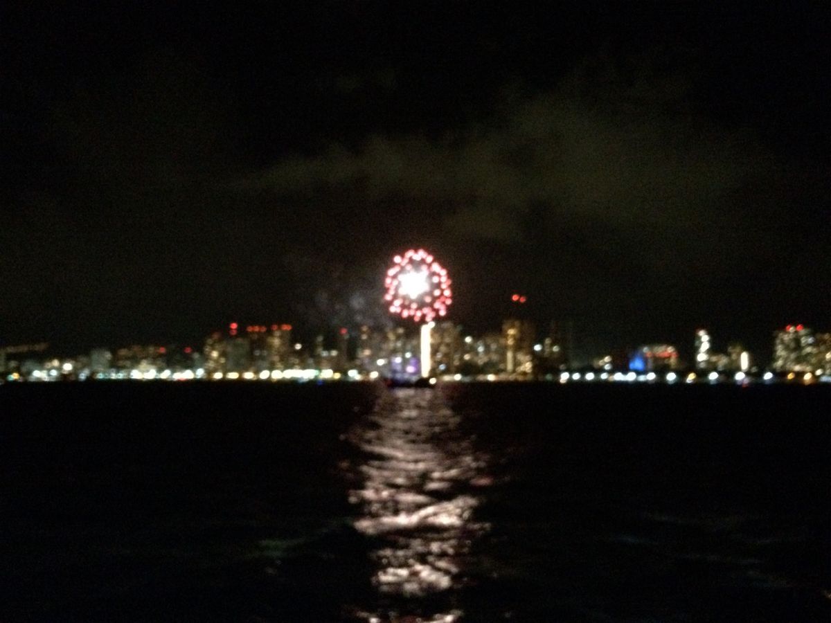 心地よい海風と軽快な音楽まばゆいばかりの夜景、そして花火。ハワイの思い出の1ページとなりました。