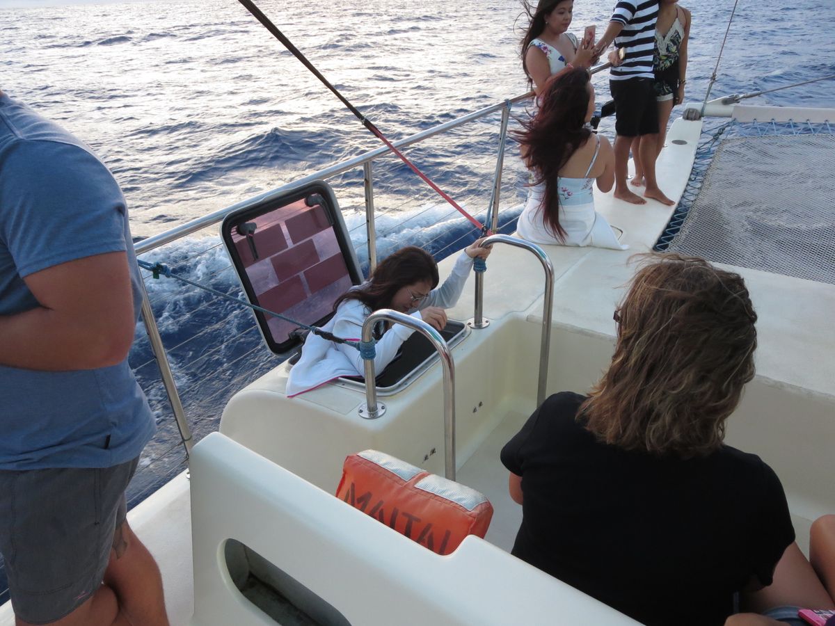 高額なお金を払うディナークルーズも良いですが、私には、オープンエアで、ハワイの波に揺られるカタマランクルーズは最高です。