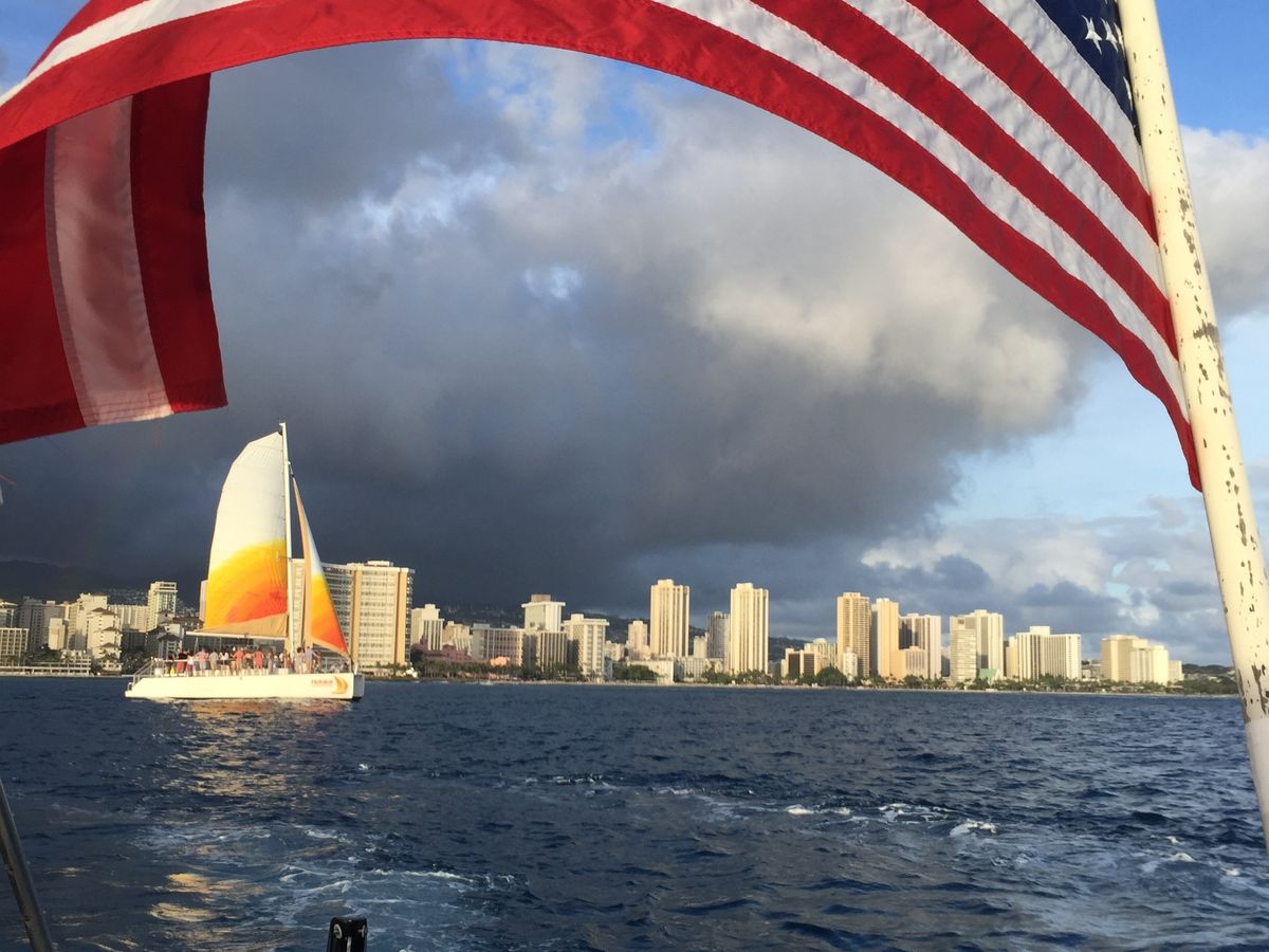 今回初めて参加しました。口コミ通り、日本人は私ともう一組だけで、あとは欧米人の方たちでした。陽気な音楽と素晴らしい景色で楽しかったです。曇っていましたがサンセットも見れ、海から見るワイキキのホテル群も新鮮でした。