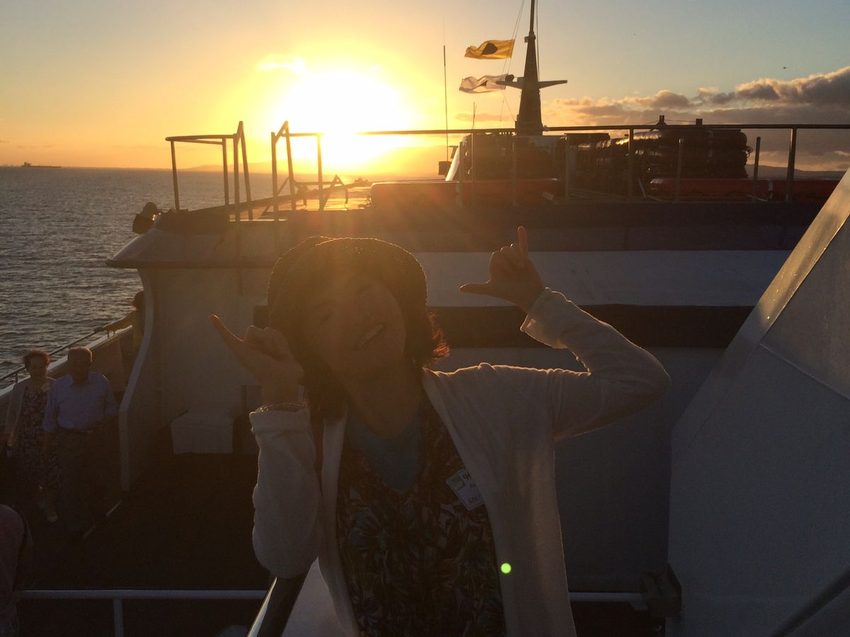当日は、朝から雨で中止ではないかと思っていましたが、、、出航2時間前ぐらいから雨も上がり最高の夕日が見れました。