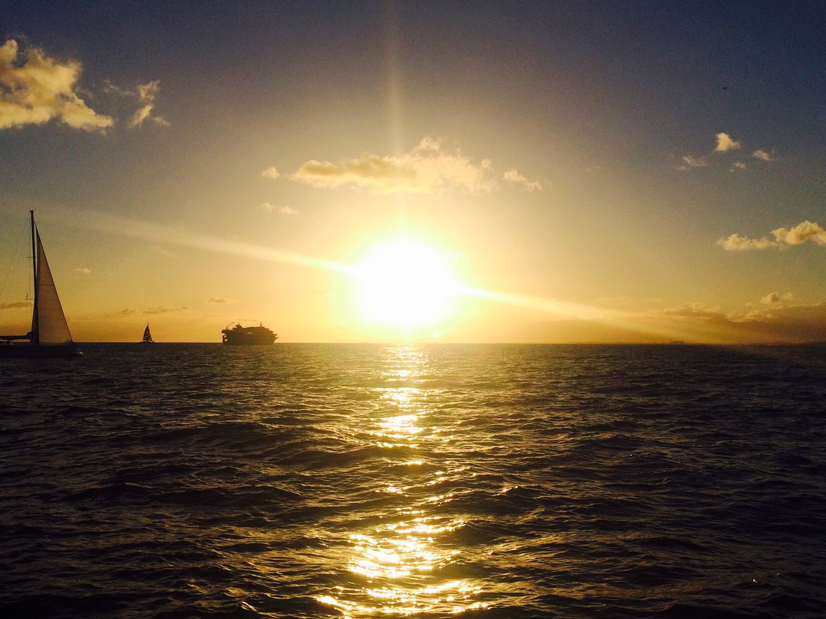 サンセットセイルは素晴らしかったです!クルーのメンバーはプロフェッショナルで、優雅で、面白かったです。この旅は私たちの休暇のハイライトの一つでした。イルカ、ダイヤモンドヘッド、そして陸と海の上にかかるダブルレインボーが、この7月4日を本当に素晴らしいものにしました!