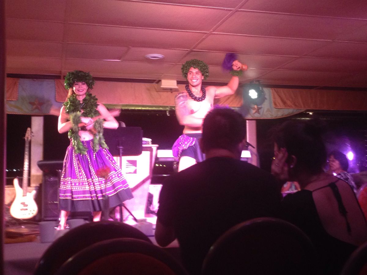 9月の初めに新婚旅行でハワイに行ったので、最終日に思い出に残ると思い、ディナークルーズを予約して行きました。天気も良く、ホテルからバスで現地まで連れて行ってくれるのでとても安心して参加することが出来ました。料理のボリュームも丁度良く、ショーも楽しかったので満足です。