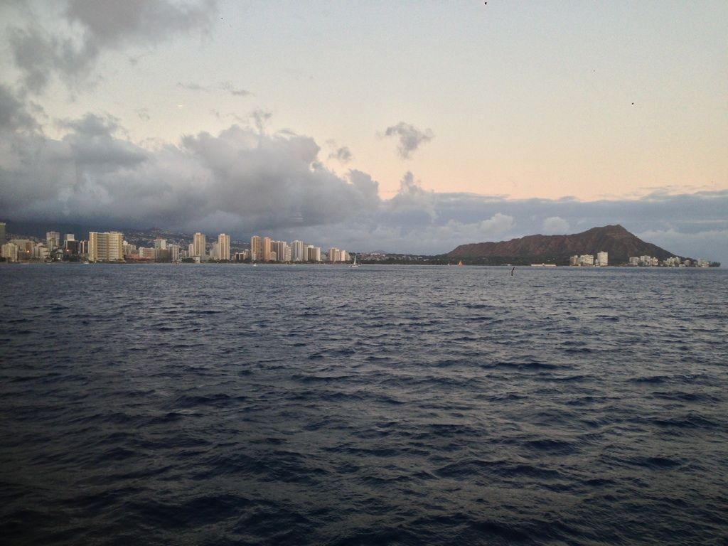 海からのホノルルの街並みやダイヤモンドヘッドは美しかったのですが、当日が曇りでサンセットを見られなかったのが心残りです。