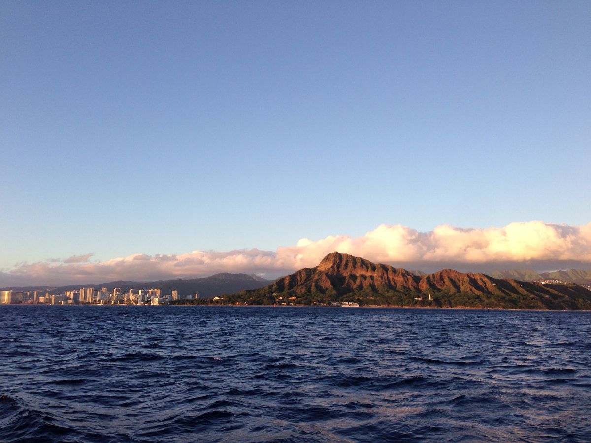 風を感じて海から見るダイヤモンドヘッドやワイキキの街はまた景色が全然違って興奮したし、水平線に沈む夕日も綺麗でした。