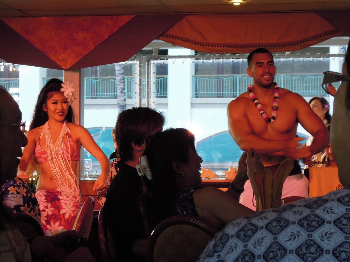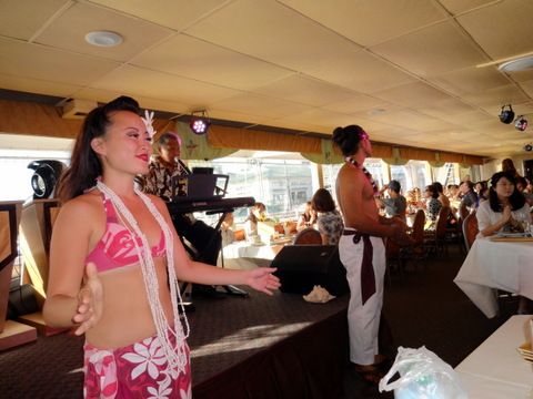 友人夫婦とハワイへ行くと決めた時から、このツアーの参加を決めていました。スタッフの対応も良く、天気も良かったので船上から沈む夕日はとっても綺麗でした。ショータイムも食事のサービスをしているスタッフが華麗なダンスでビックリ!!!盛り上がりました。