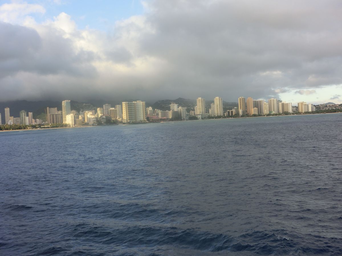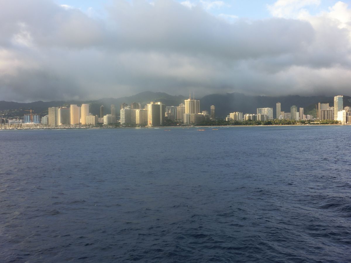 以前、ナバテックのサンセットクルーズの経験があり、そんなに特別な印象がなかったので今回当初の予定ではサンセットクルーズは入ってなかったのですが、料金が安いこと、ワイキキビーチから出ること、妻がハワイが初めてだったことで予約しました。