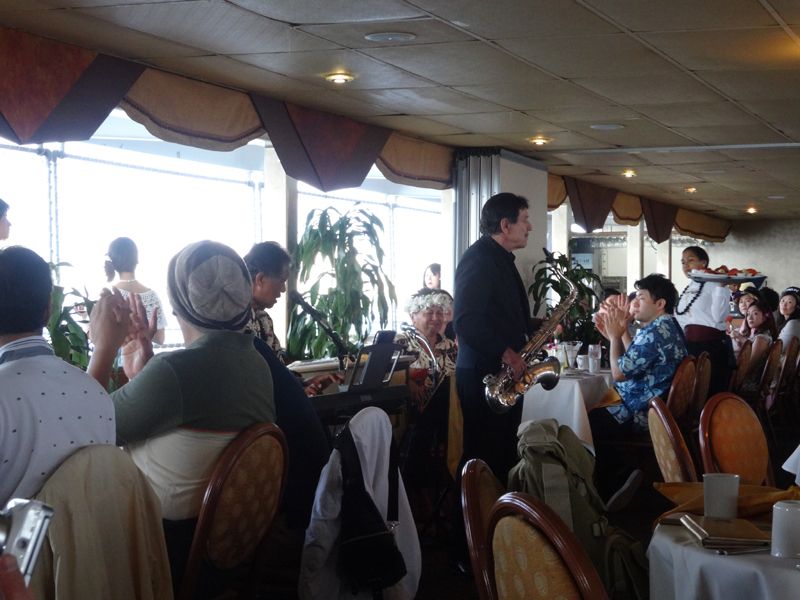 今回はファミリー参加で 少食の小学生の孫もいましたので一番下のランクの「ビュッフェ」にしたのですが、部屋も狭く暗く、そしてなんと言ってもショーがおじさん独りのウクレレ&ボーカルと数人のダンサーだけと言った寂しさでした。